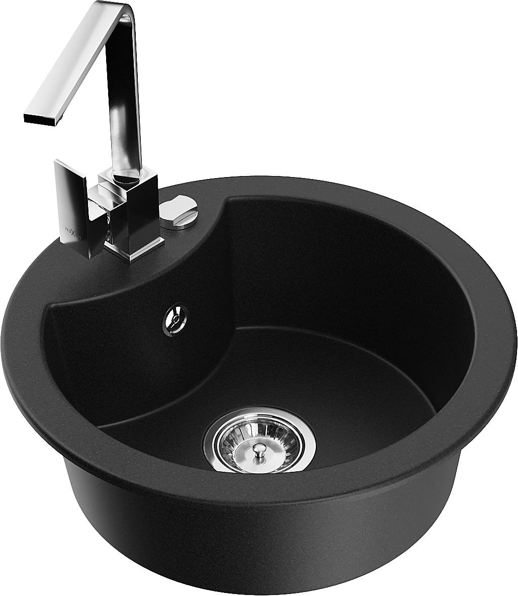 Mexen Diego zlewozmywak granitowy 1-komorowy z baterią kuchenną Rita, czarny - 6512-77-670300-00