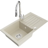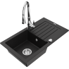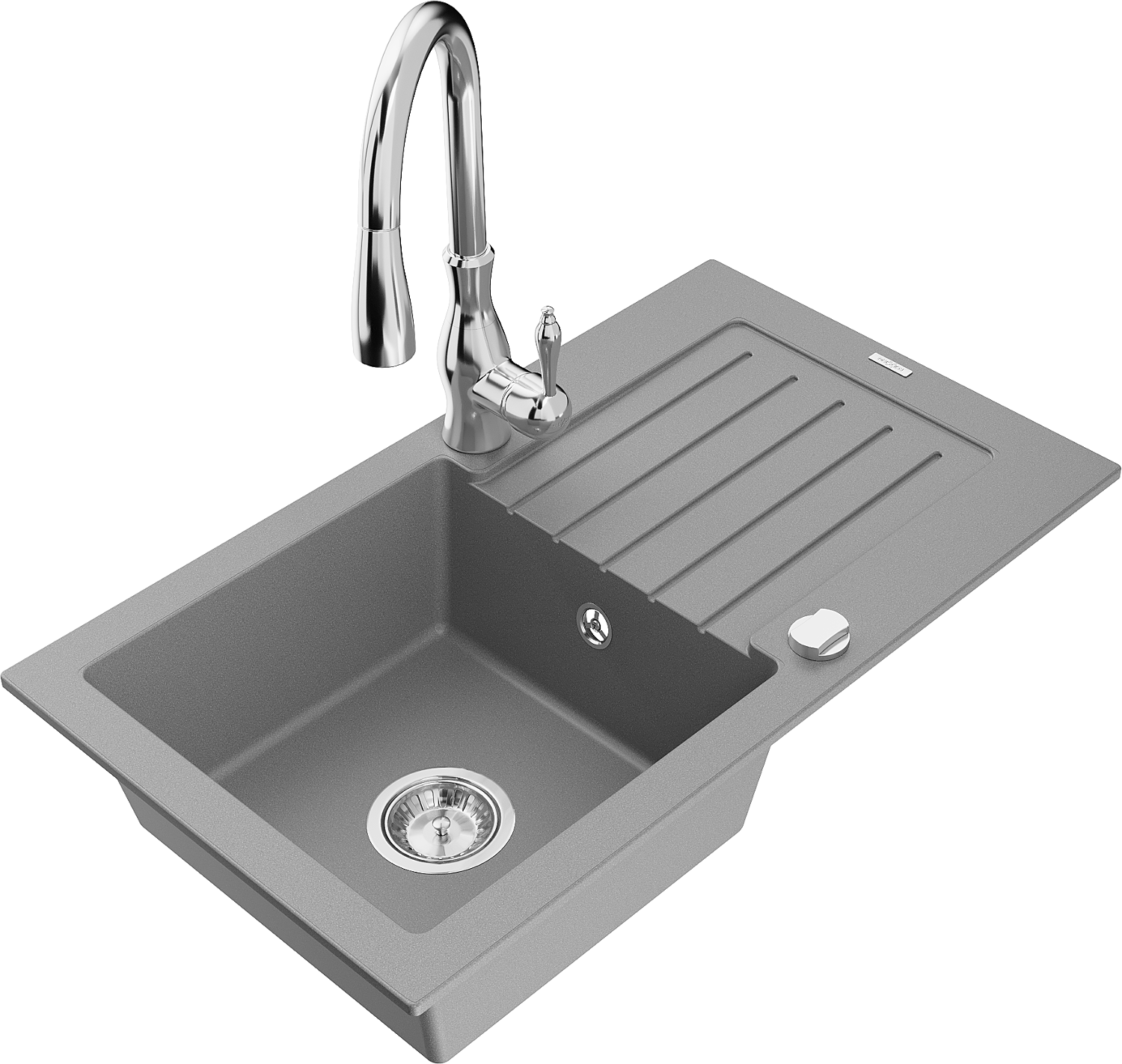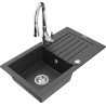 Mexen Pablo zlewozmywak granitowy 1-komorowy z ociekaczem i baterią kuchenną Savita, szary - 6510-71-672601-00