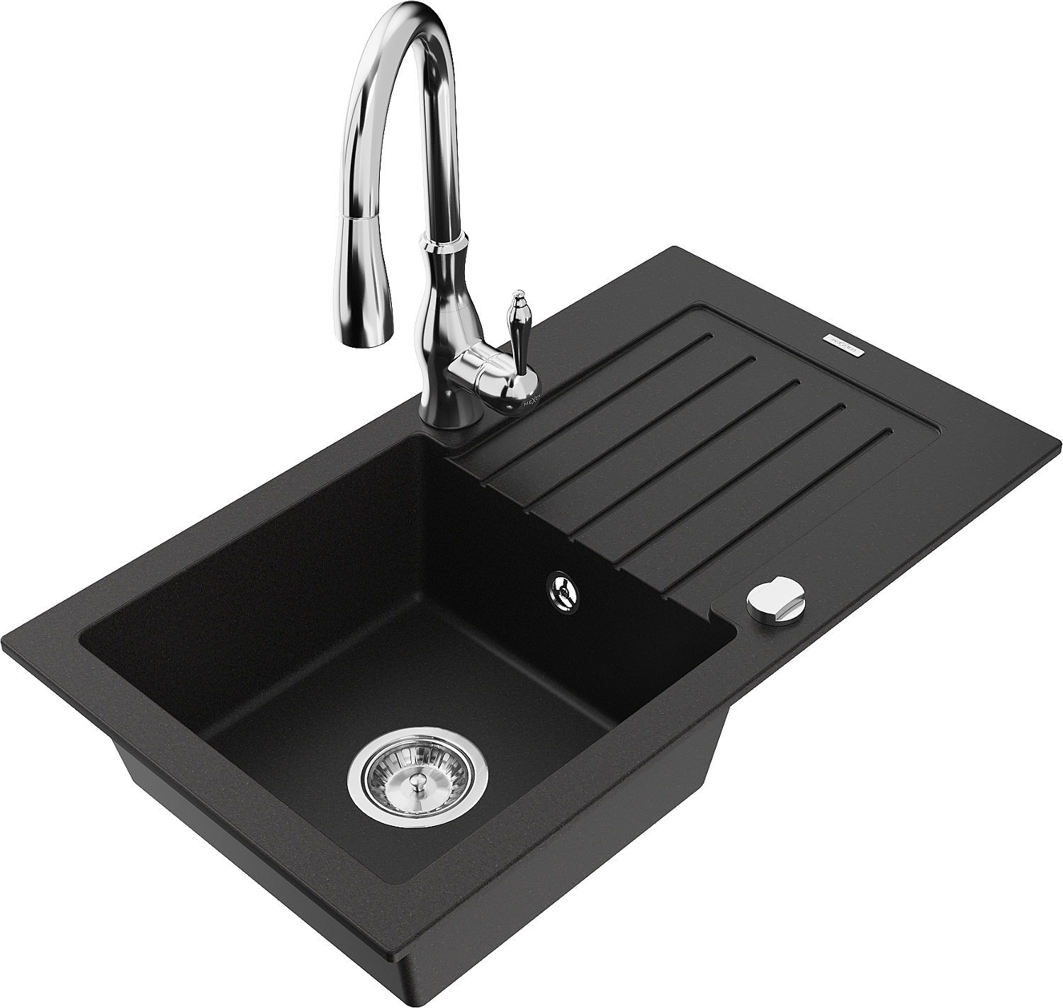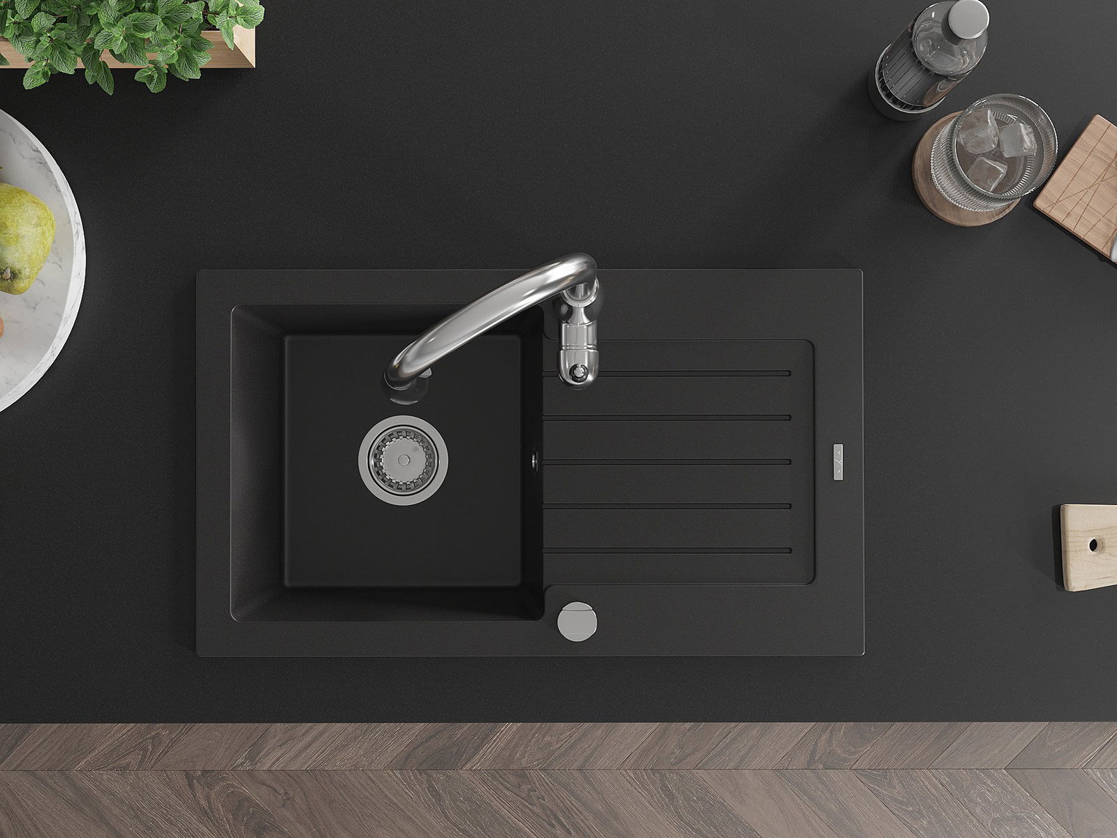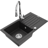 Mexen Pablo zlewozmywak granitowy 1-komorowy z ociekaczem i baterią kuchenną Savita, czarny - 6510-77-672601-00