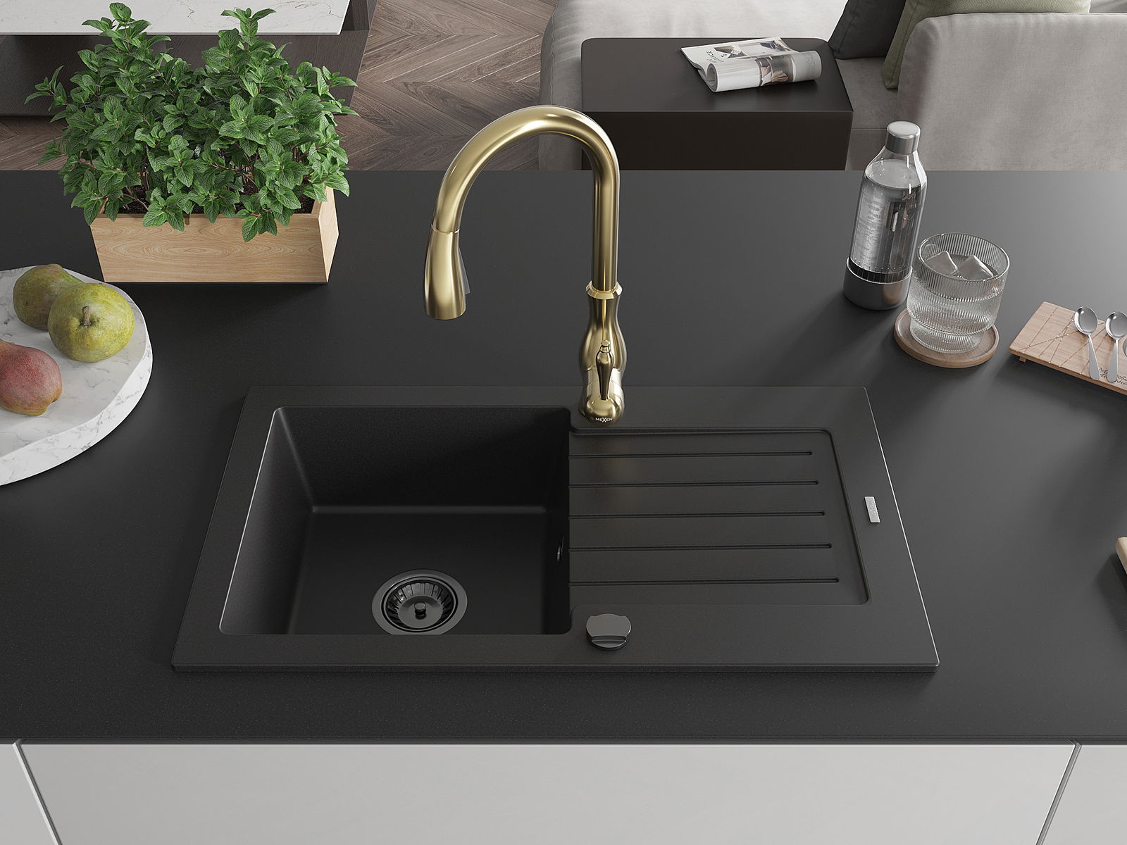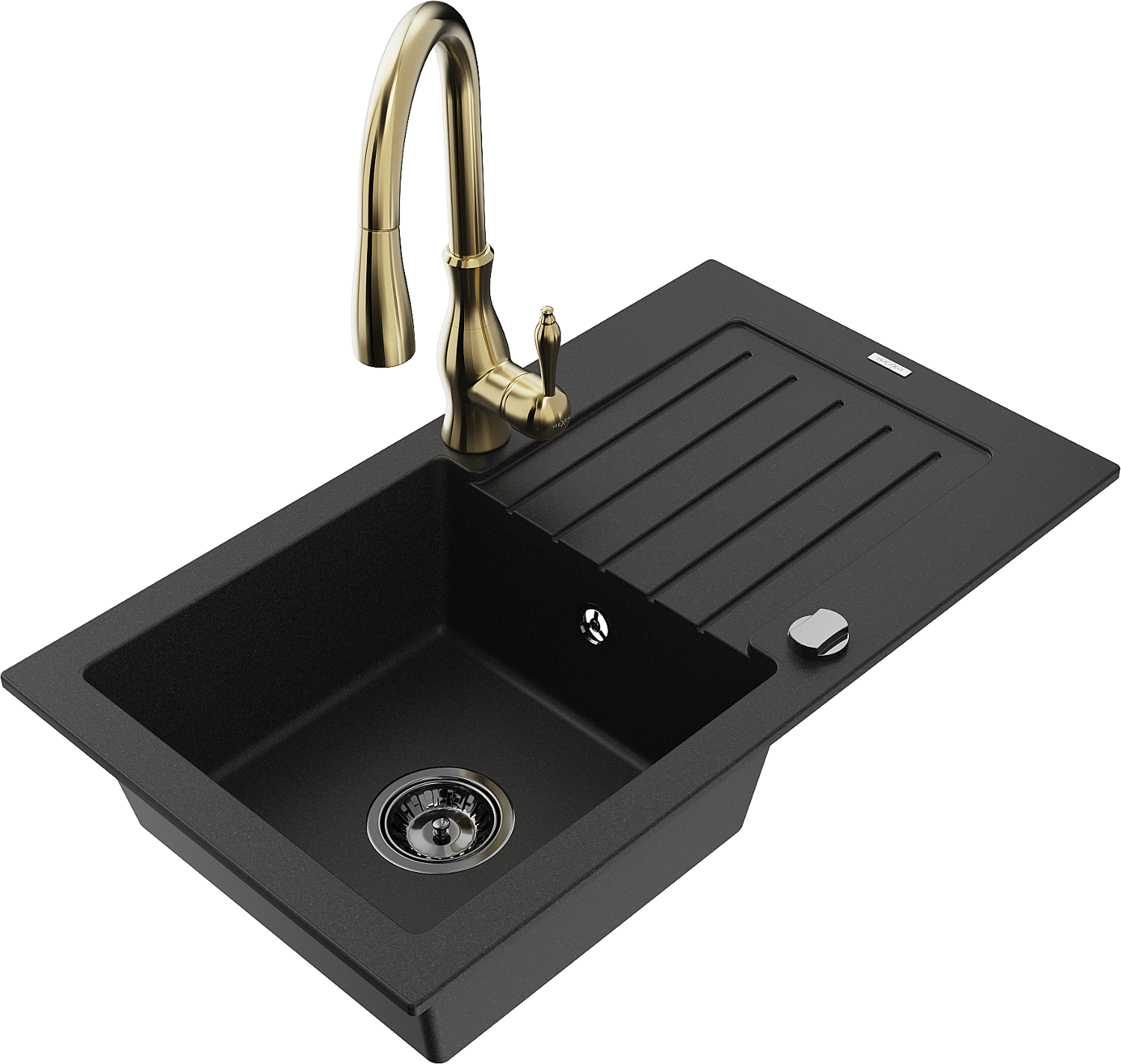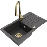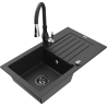 Mexen Pablo zlewozmywak granitowy 1-komorowy z ociekaczem i baterią kuchenną Savita, czarny - 6510-77-672601-50-B