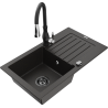 Mexen Pablo zlewozmywak granitowy 1-komorowy z ociekaczem i baterią kuchenną Savita, czarny - 6510-77-672601-70-B