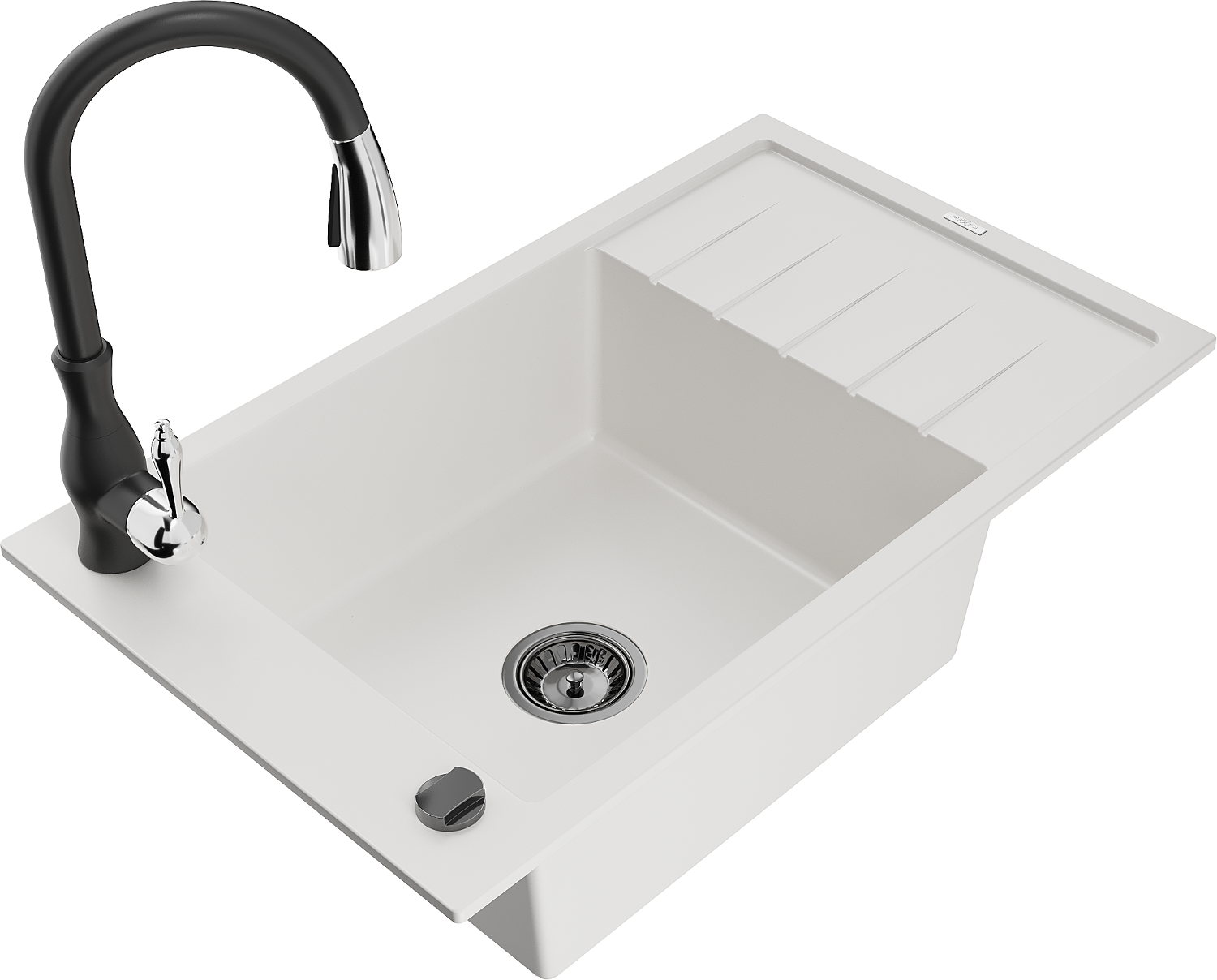Mexen Elias zlewozmywak granitowy 1-komorowy z ociekaczem i baterią kuchenną Savita, biały - 6511-20-672601-70