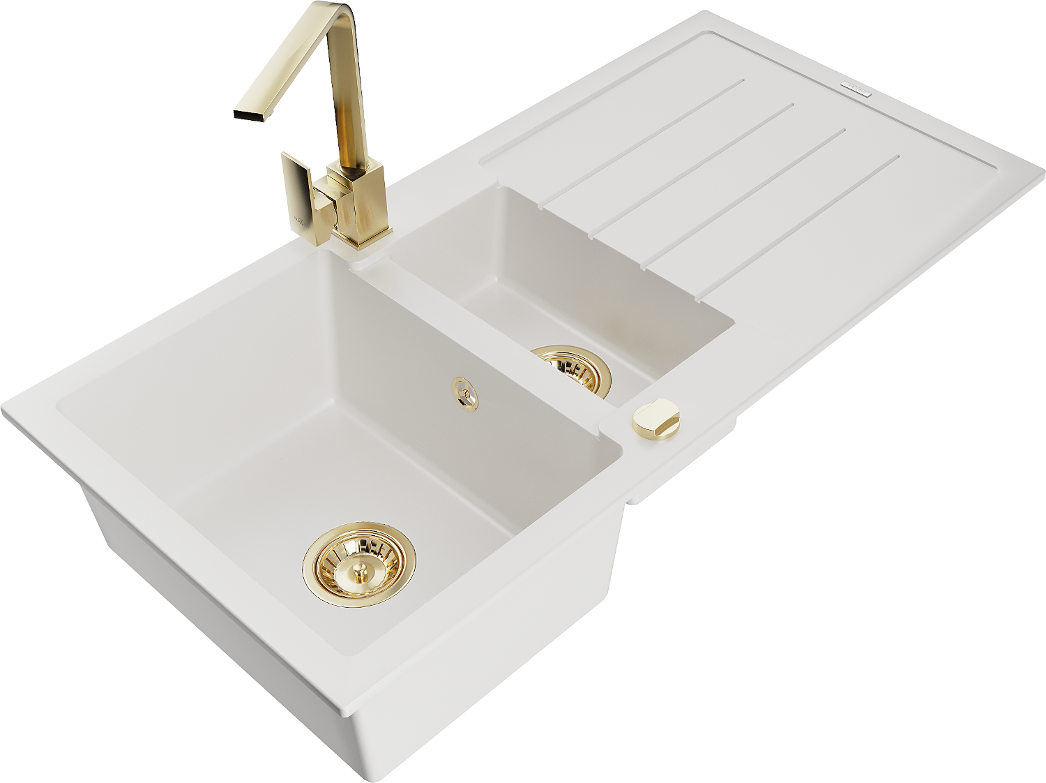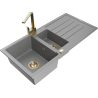 Mexen Andres zlewozmywak granitowy 1,5-komorowy z ociekaczem i baterią kuchenną Rita, biały - 6515-20-670300-50