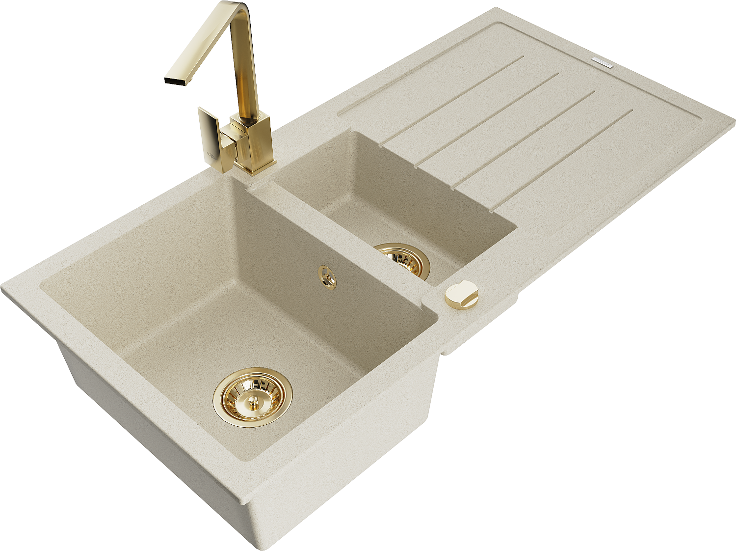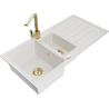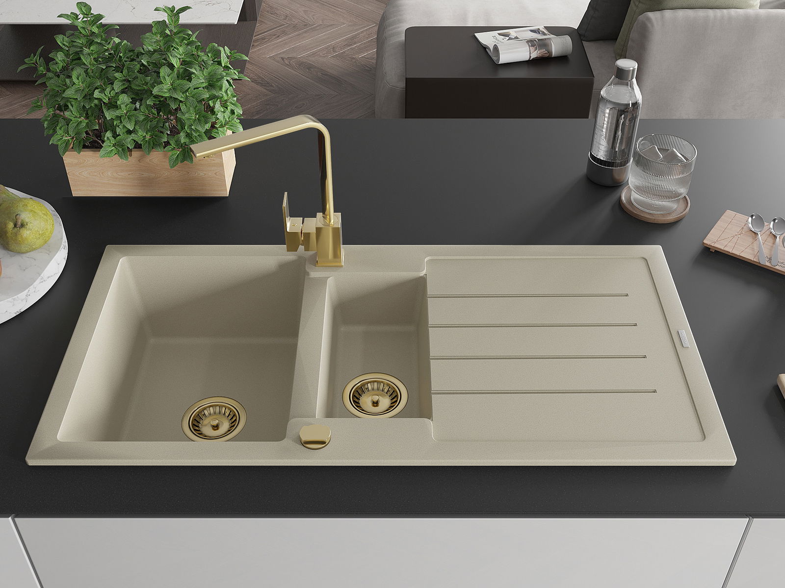 Mexen Andres zlewozmywak granitowy 1,5-komorowy z ociekaczem i baterią kuchenną Rita, beżowy - 6515-69-670300-50