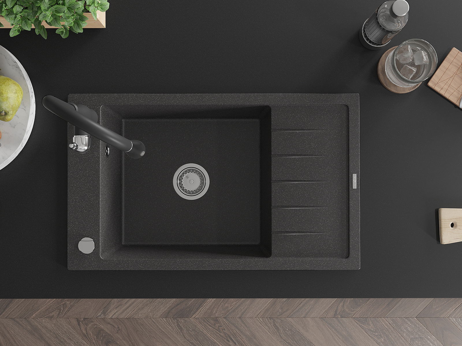 Zlewozmywak został wykonany z wysokiej jakości granitu. Stanowi eleganckie, a przede wszystkim praktyczne uzupełnienie każdej kuchni, niezależnie od jej stylu. Wysoka jakość oraz trwałość granitu zapewniają wieloletnie użytkowanie.