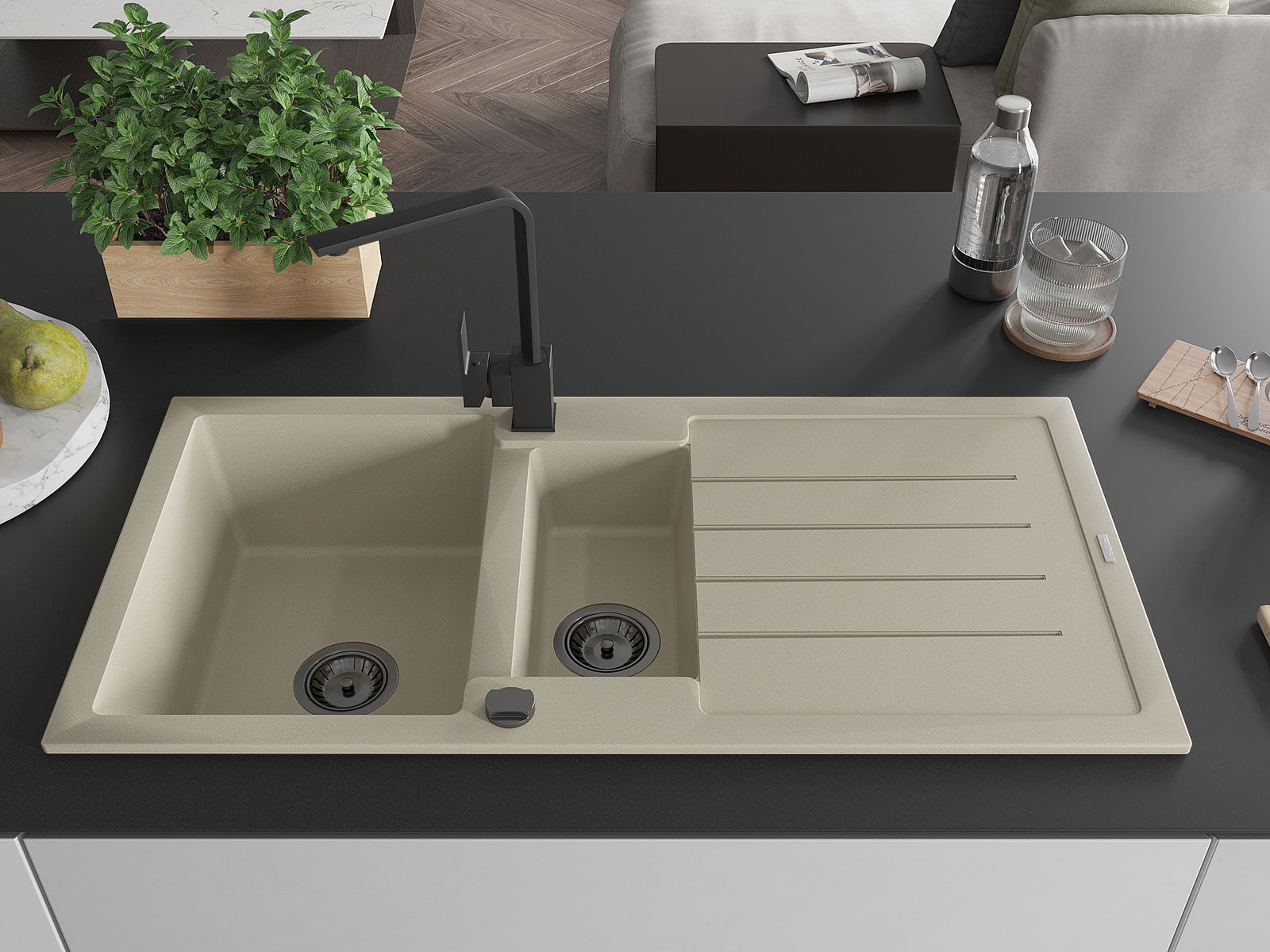 Zlewozmywak został wykonany z wysokiej jakości granitu. Stanowi eleganckie, a przede wszystkim praktyczne uzupełnienie każdej kuchni, niezależnie od jej stylu. Wysoka jakość oraz trwałość granitu zapewniają wieloletnie użytkowanie.