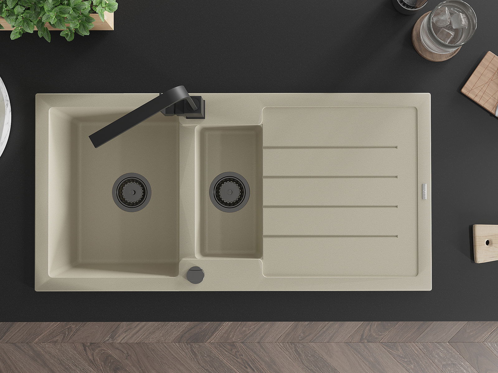 Mexen Andres zlewozmywak granitowy 1,5-komorowy z ociekaczem i baterią kuchenną Rita, beżowy - 6515-69-670300-70