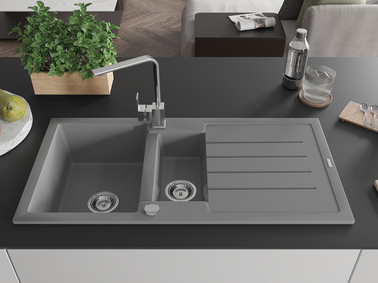 Zlewozmywak został wykonany z wysokiej jakości granitu. Stanowi eleganckie, a przede wszystkim praktyczne uzupełnienie każdej kuchni, niezależnie od jej stylu. Wysoka jakość oraz trwałość granitu zapewniają wieloletnie użytkowanie.