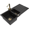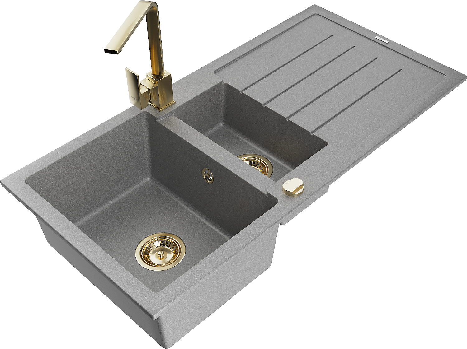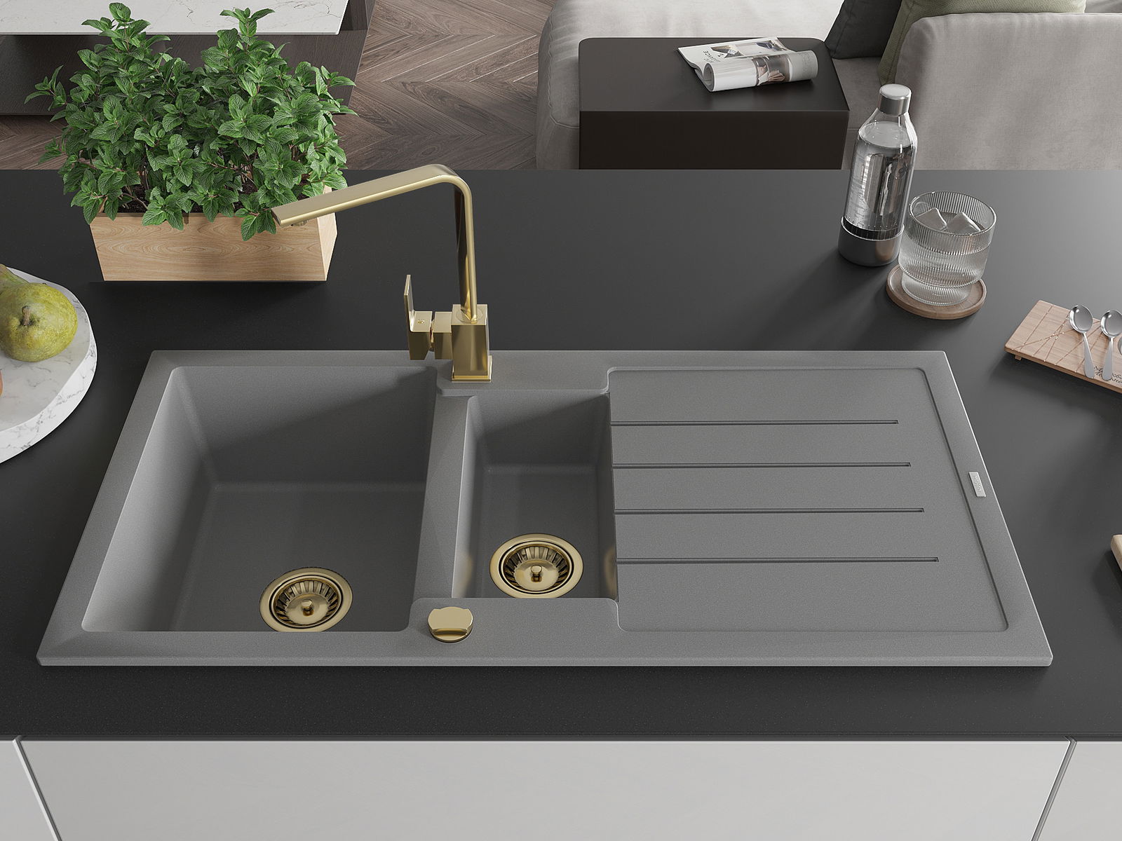 Mexen Andres zlewozmywak granitowy 1,5-komorowy z ociekaczem i baterią kuchenną Rita, szary - 6515-71-670300-50