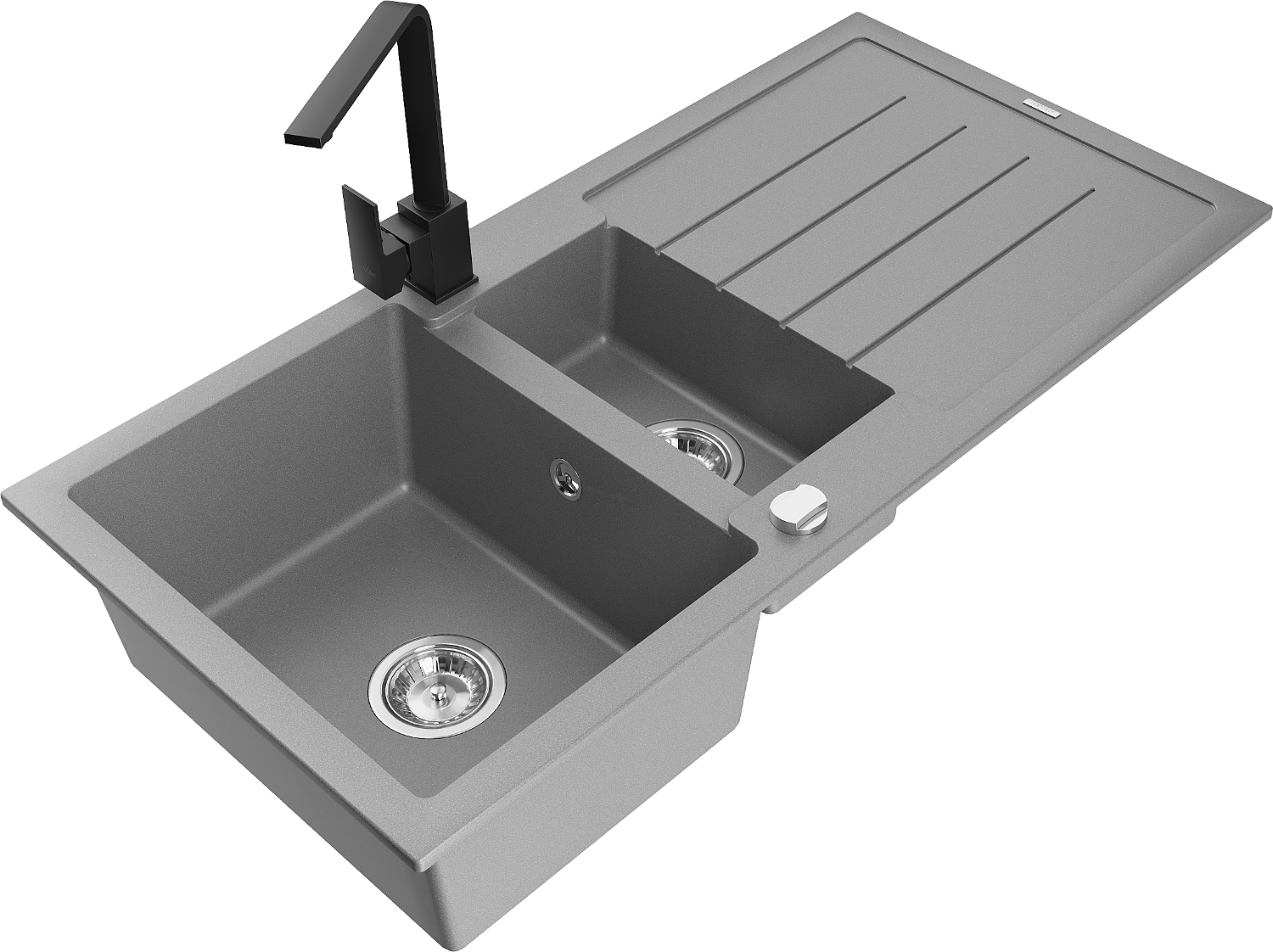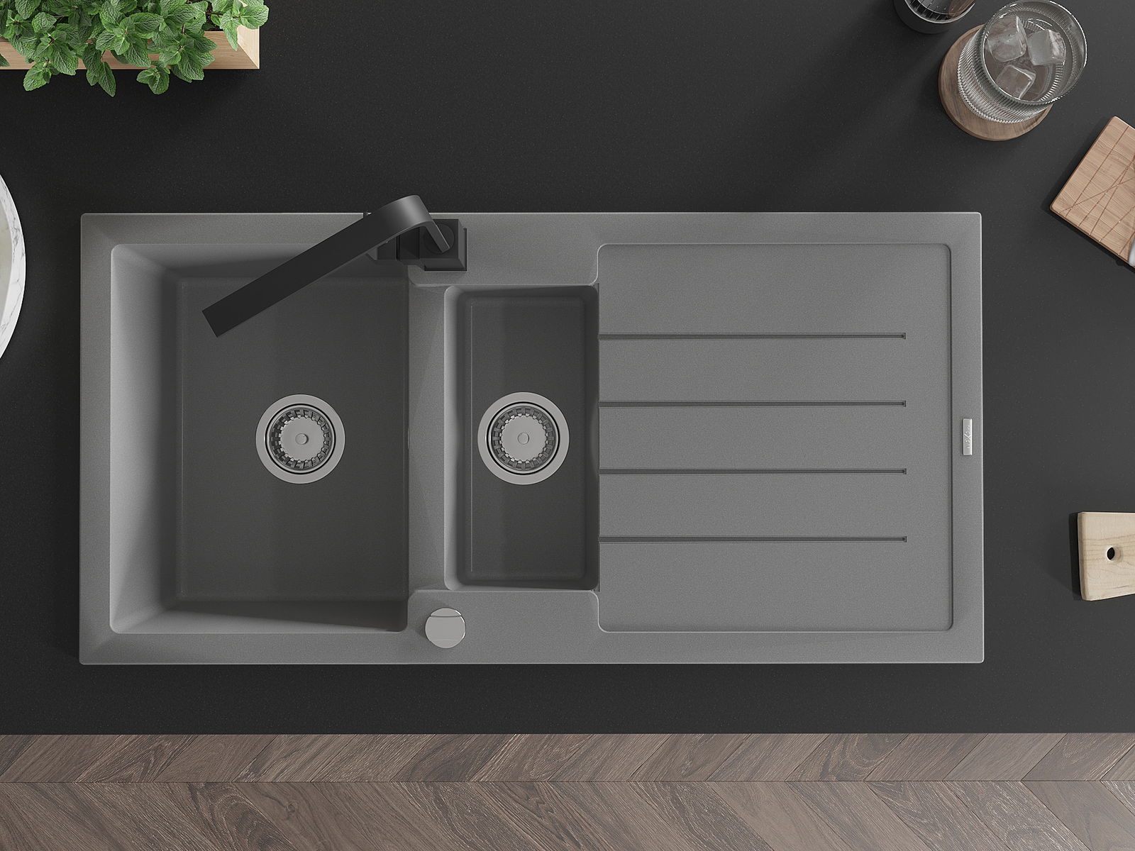Mexen Andres zlewozmywak granitowy 1,5-komorowy z ociekaczem i baterią kuchenną Rita, szary - 6515-71-670300-70