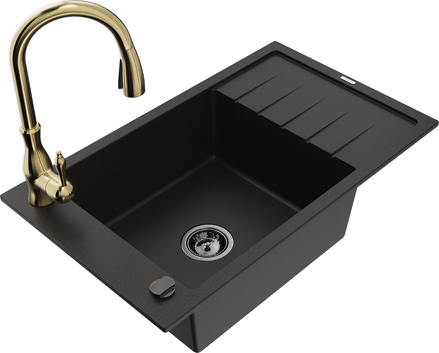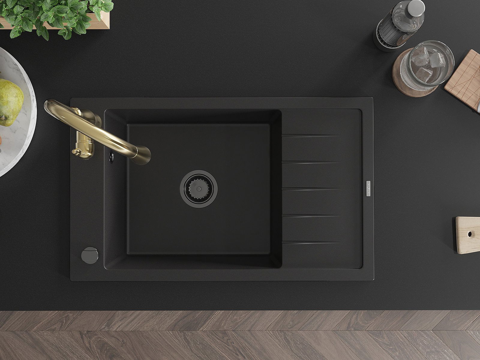 Mexen Elias zlewozmywak granitowy 1-komorowy z ociekaczem i baterią kuchenną Savita, czarny - 6511-77-672601-50-B