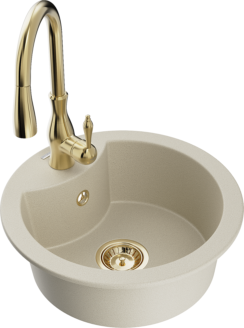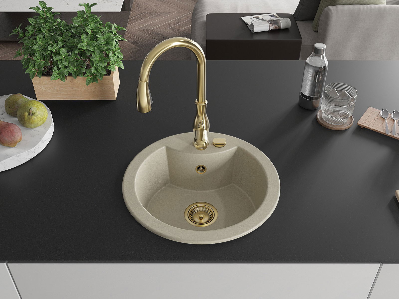 Mexen Diego zlewozmywak granitowy 1-komorowy z baterią kuchenną Savita, beżowy - 6512-69-672601-50