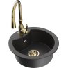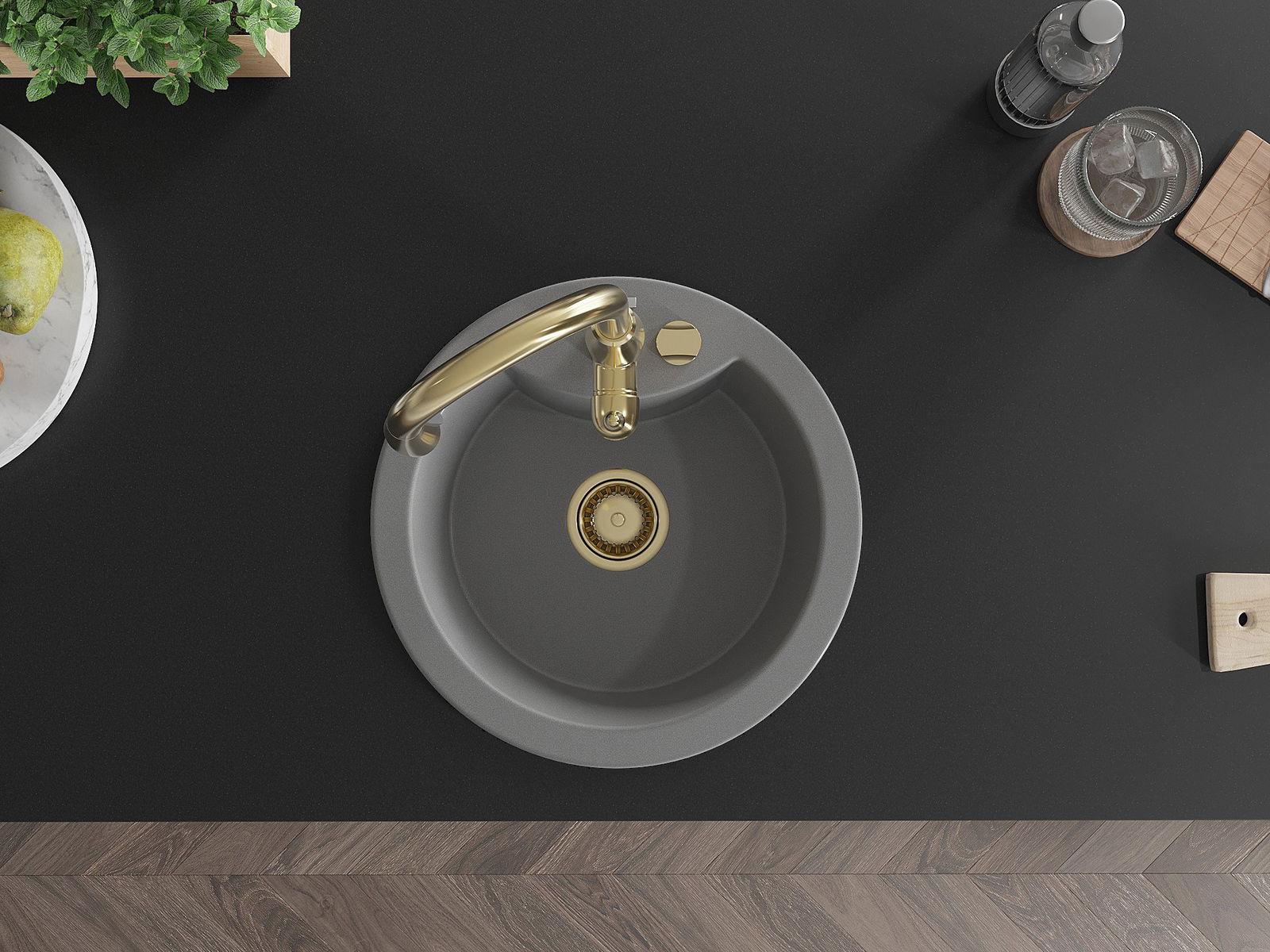 Mexen Diego zlewozmywak granitowy 1-komorowy z baterią kuchenną Savita, szary - 6512-71-672601-50