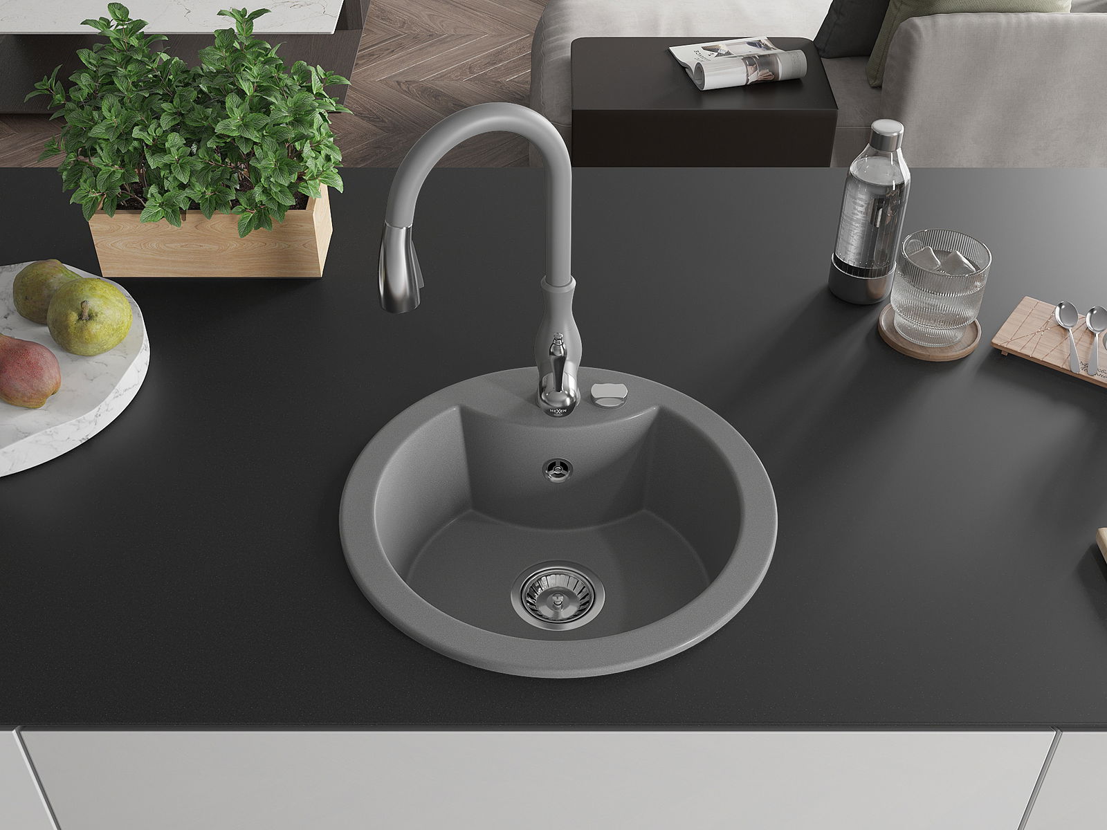 Zlewozmywak został wykonany z wysokiej jakości granitu. Stanowi eleganckie, a przede wszystkim praktyczne uzupełnienie każdej kuchni, niezależnie od jej stylu. Wysoka jakość oraz trwałość granitu zapewniają wieloletnie użytkowanie.