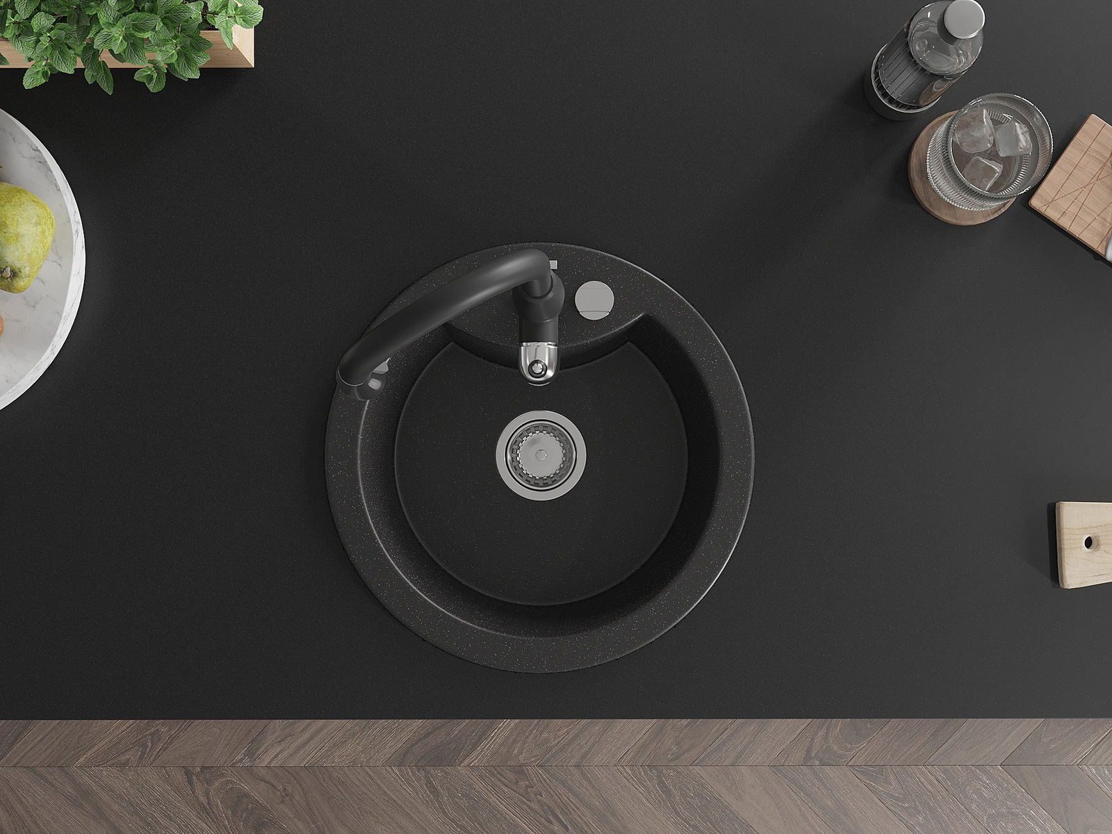 Mexen Diego zlewozmywak granitowy 1-komorowy z baterią kuchenną Savita, czarny/srebrny metalik - 6512-73-672601-70
