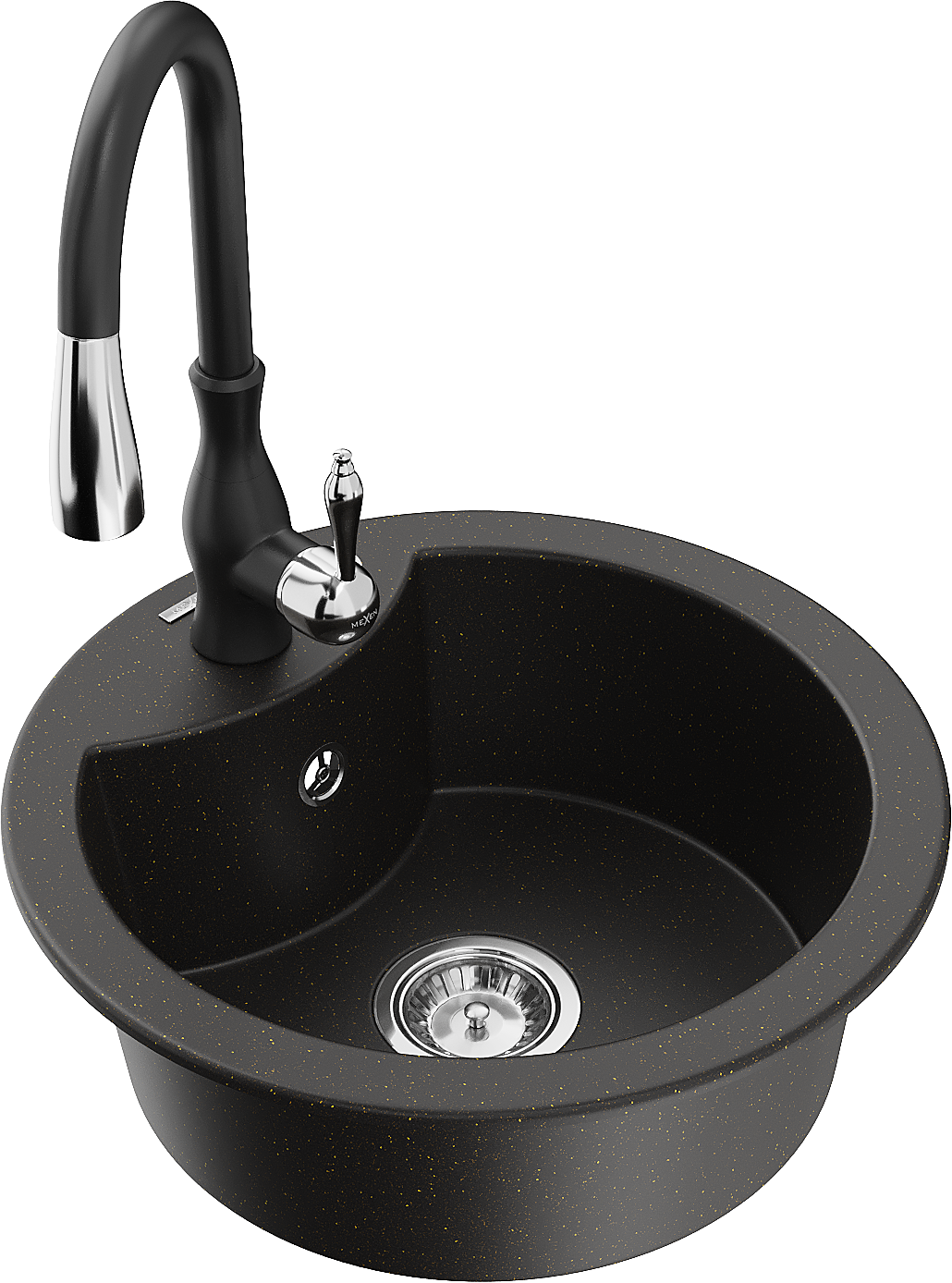 Mexen Diego zlewozmywak granitowy 1-komorowy z baterią kuchenną Savita, czarny/złoty metalik - 6512-75-672601-70