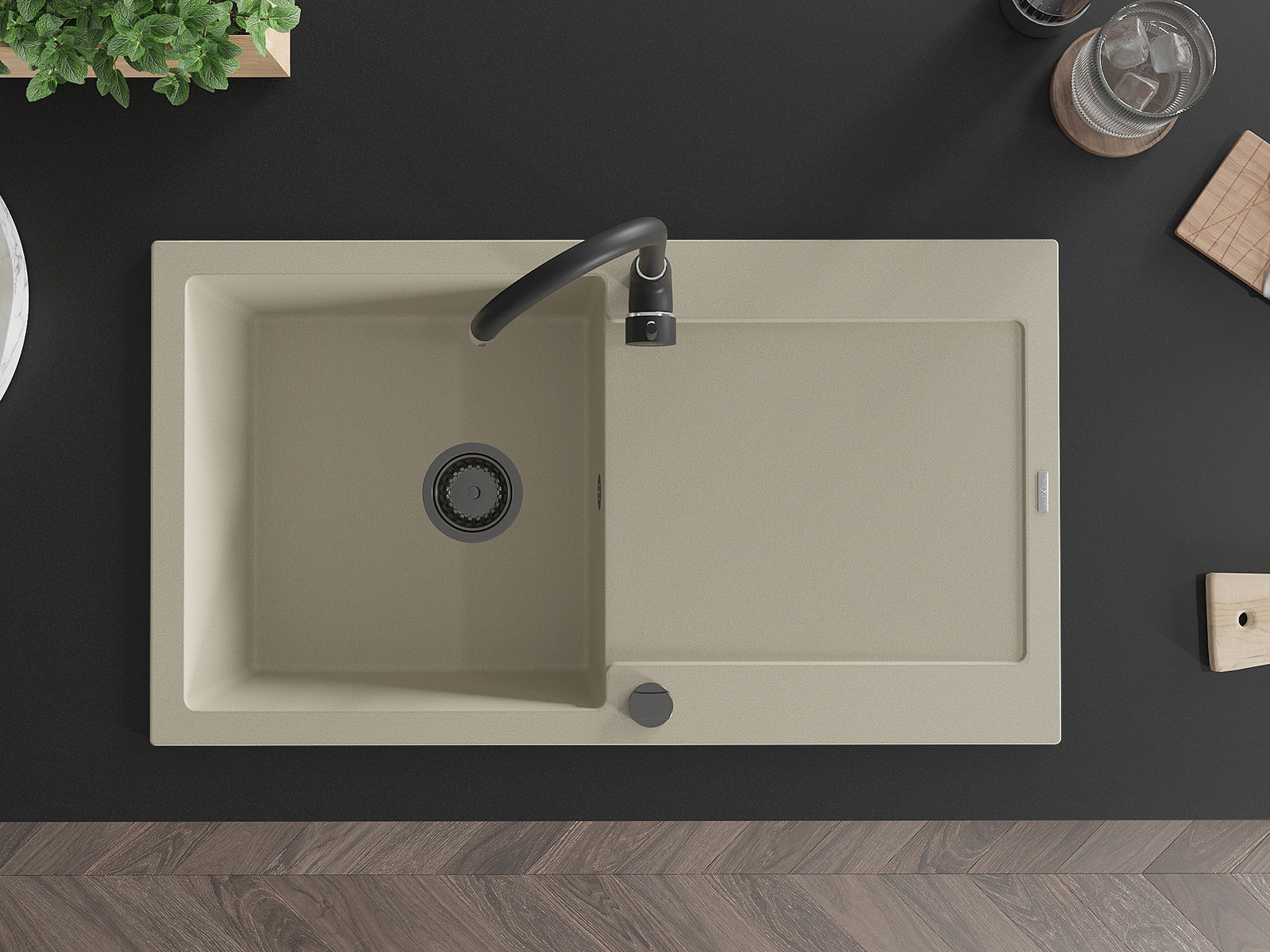Dzięki zastosowaniu uniwersalnego systemu mocowania, zlew jest odwracalny, a ociekacz może zostać zamontowany na blacie po lewej lub prawej stronie. W ten sposób możesz z łatwością dopasować stronę do swoich potrzeb i warunków.