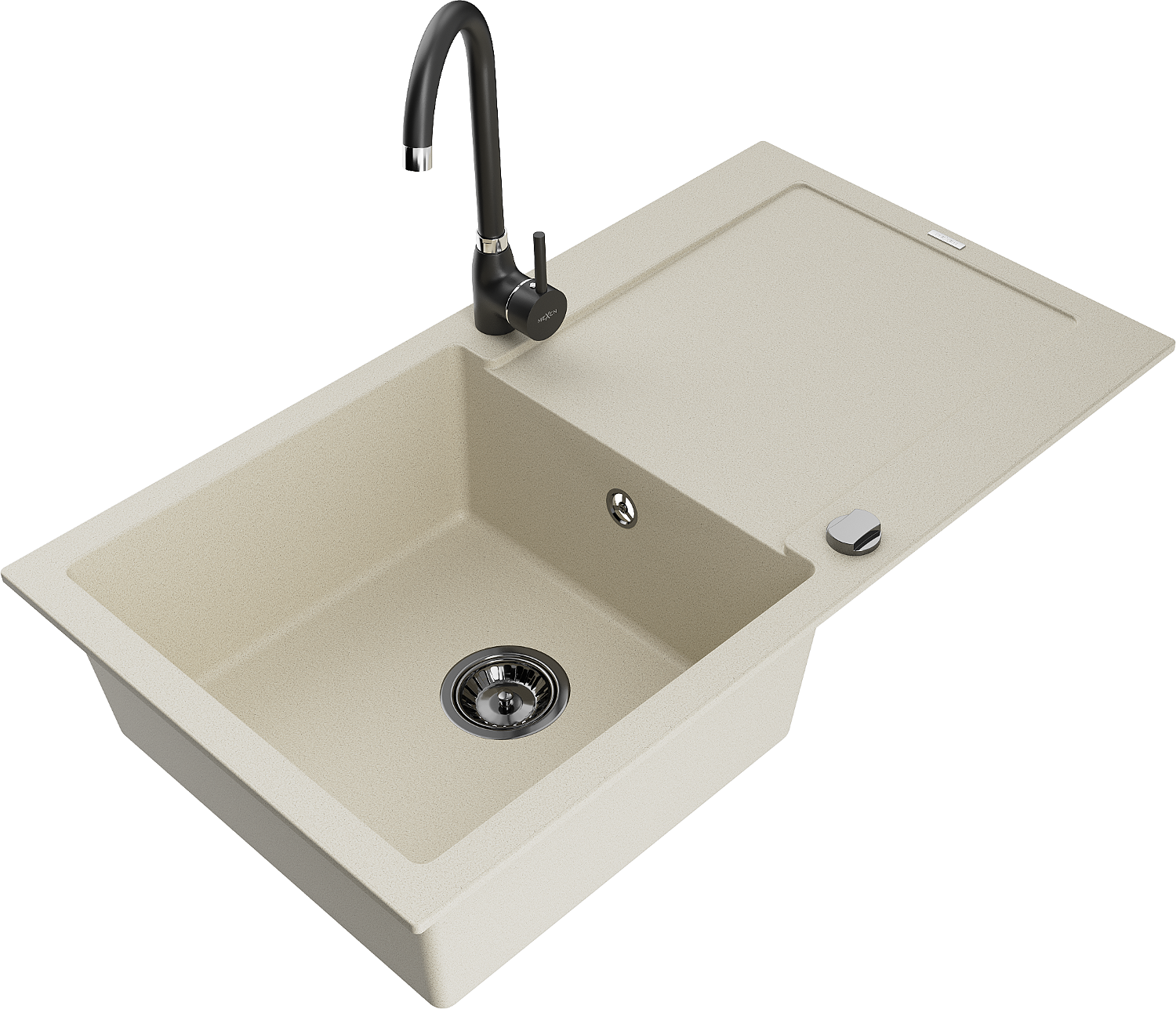Mexen Leo zlewozmywak granitowy 1-komorowy z ociekaczem i baterią kuchenną Telma, beżowy - 6501-69-670200-70