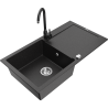 Mexen Leo zlewozmywak granitowy 1-komorowy z ociekaczem i baterią kuchenną Telma, czarny nakrapiany - 6501-76-670200-70