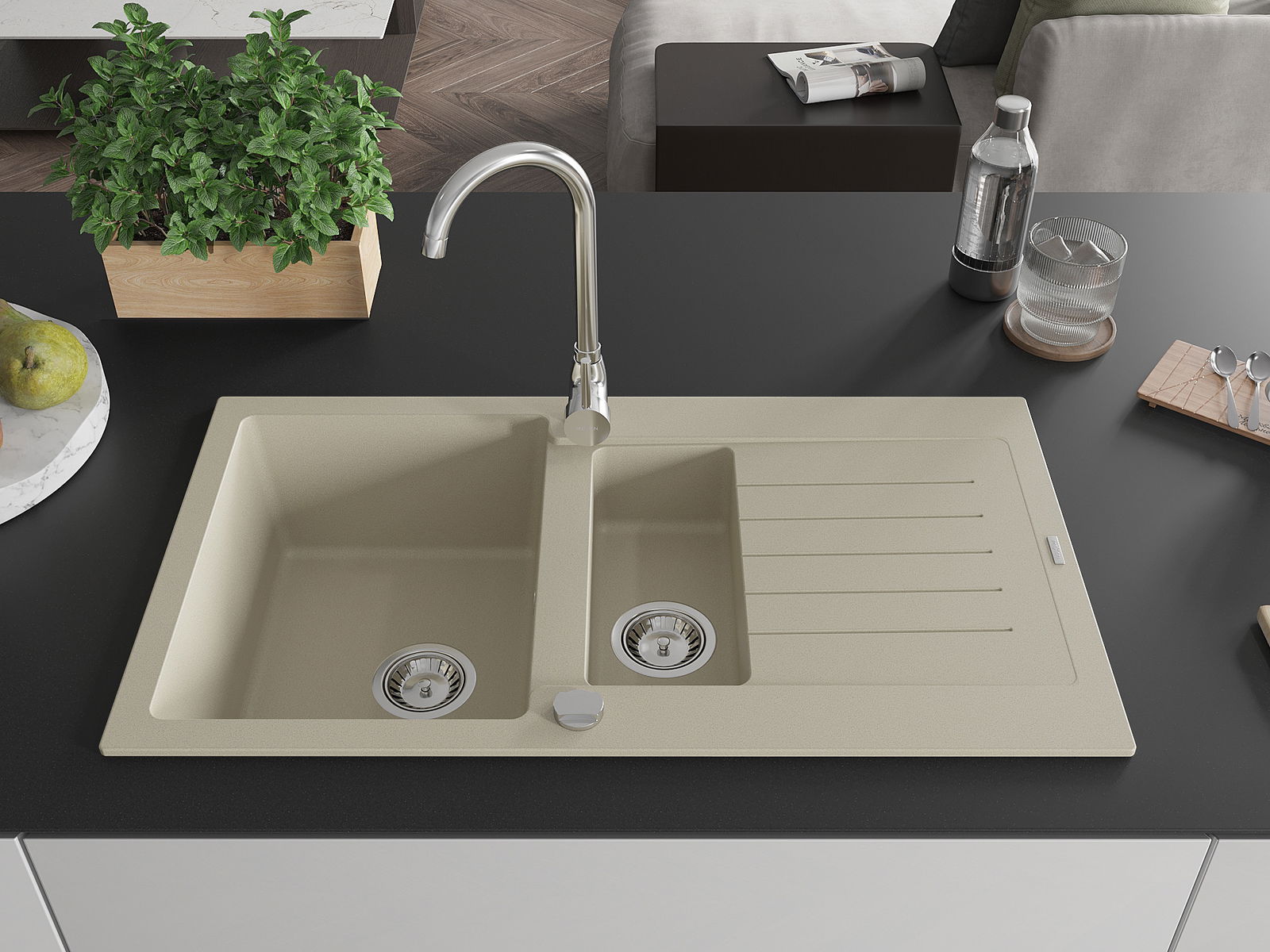 Powierzchnia zlewozmywaka jest odporna na plamy i przebarwienia, dzięki czemu jest łatwa w utrzymaniu czystości oraz zachowuje swój kolor przez długi czas użytkowania. Estetyczne i praktycznie uzupełnienie każdej kuchni.