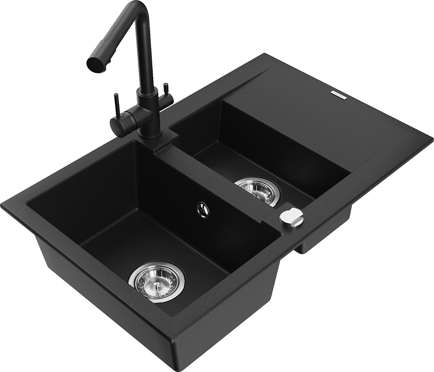 Mexen Gaspar zlewozmywak granitowy 1,5-komorowy z ociekaczem i baterią kuchenną Duero, czarny - 6507-77-671600-70