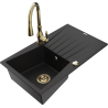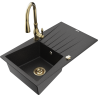 Mexen Cesar zlewozmywak granitowy 1-komorowy z ociekaczem i baterią kuchenną Savita, czarny/złoty metalik - 6514-75-672601-50