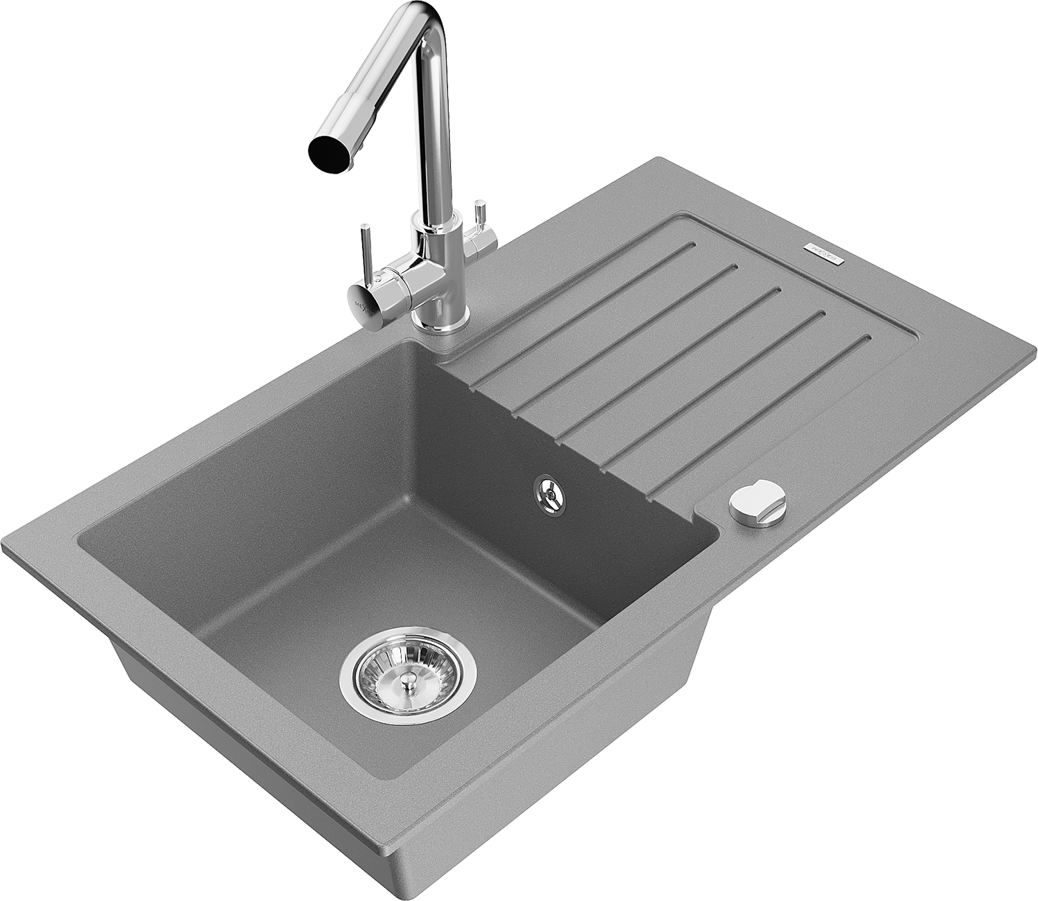 Mexen Pablo zlewozmywak granitowy 1-komorowy z ociekaczem i baterią kuchenną Duero, szary - 6510-71-671600-00