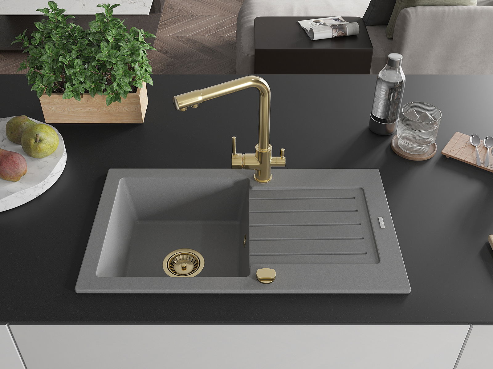 Zlewozmywak został wykonany z wysokiej jakości granitu. Stanowi eleganckie, a przede wszystkim praktyczne uzupełnienie każdej kuchni, niezależnie od jej stylu. Wysoka jakość oraz trwałość granitu zapewniają wieloletnie użytkowanie.