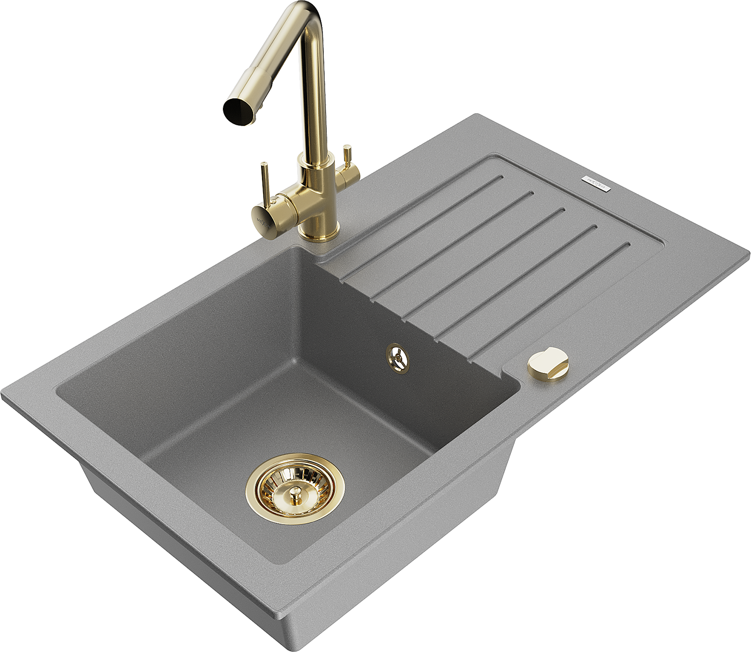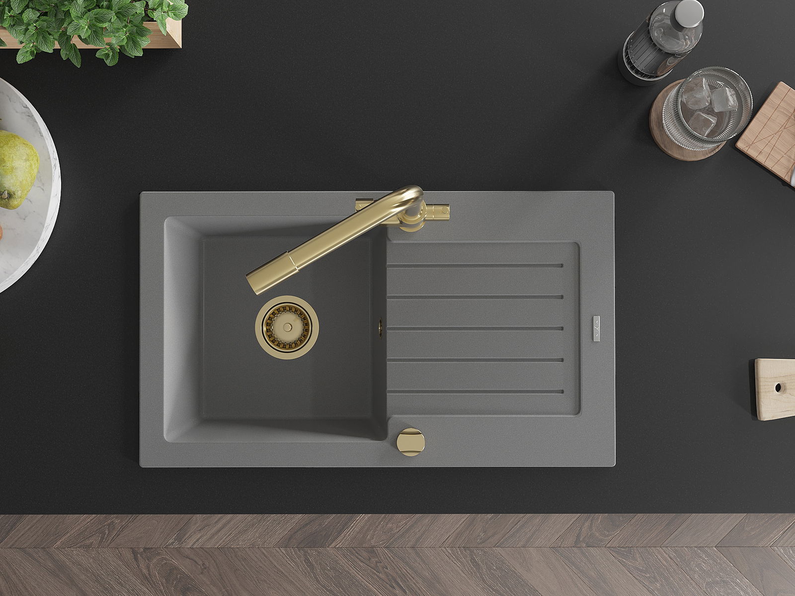 Mexen Pablo zlewozmywak granitowy 1-komorowy z ociekaczem i baterią kuchenną Duero, szary - 6510-71-671600-50
