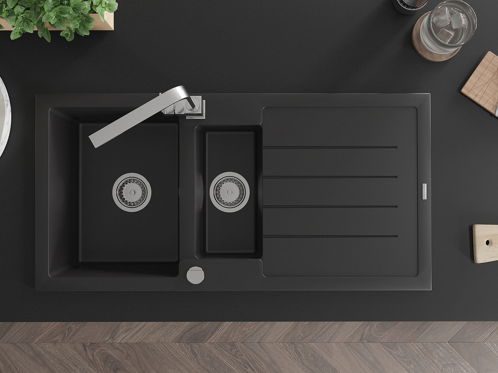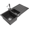 Mexen Andres zlewozmywak granitowy 1,5-komorowy z ociekaczem i baterią kuchenną Rita, czarny - 6515-77-670300-00