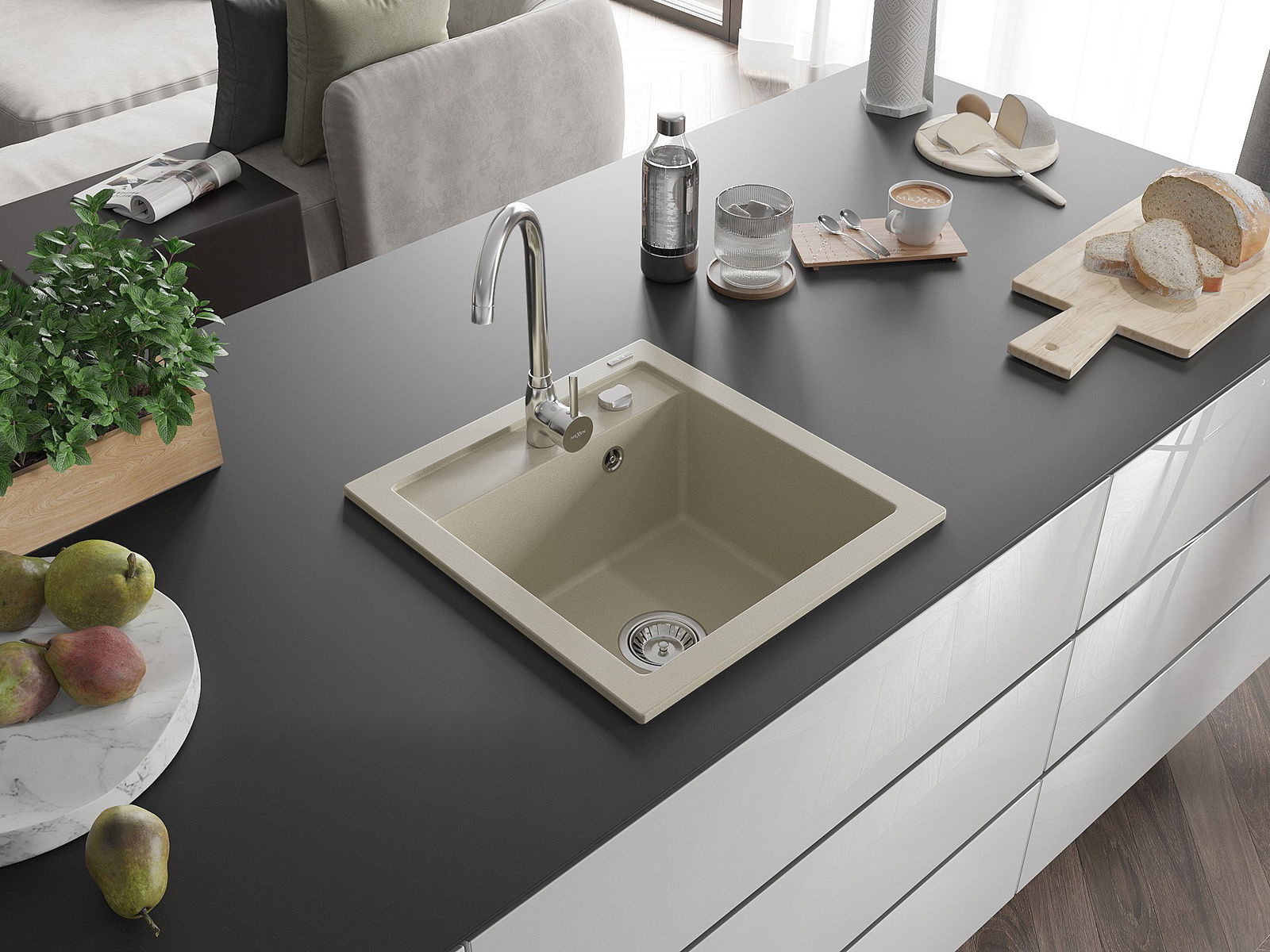 Zlewozmywak został wykonany z wysokiej jakości granitu. Stanowi eleganckie, a przede wszystkim praktyczne uzupełnienie każdej kuchni, niezależnie od jej stylu. Wysoka jakość oraz trwałość granitu zapewniają wieloletnie użytkowanie.