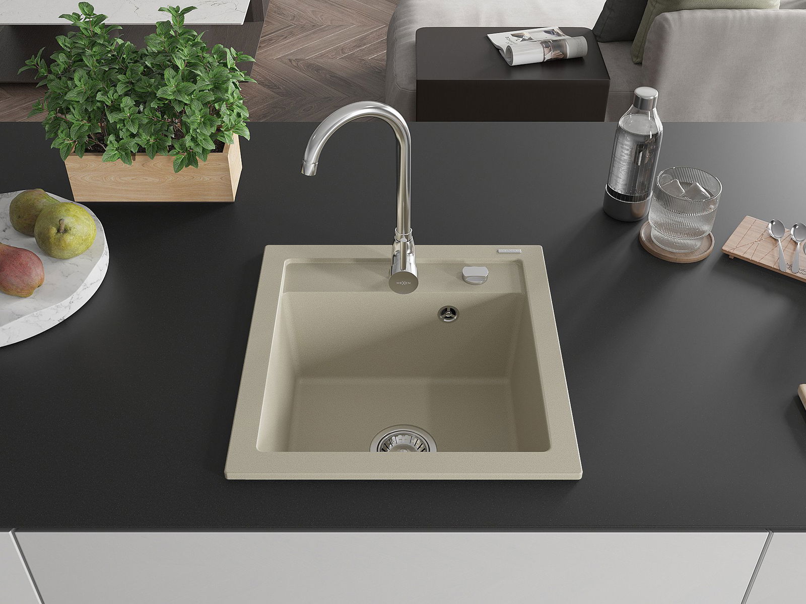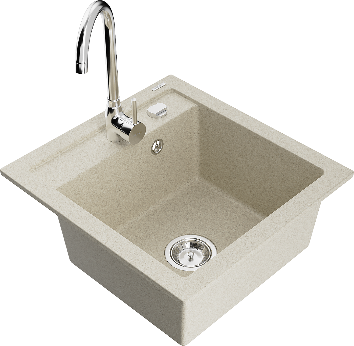 Mexen Vito zlewozmywak granitowy 1-komorowy z baterią kuchenną Telma, beżowy - 6503-69-670200-00
