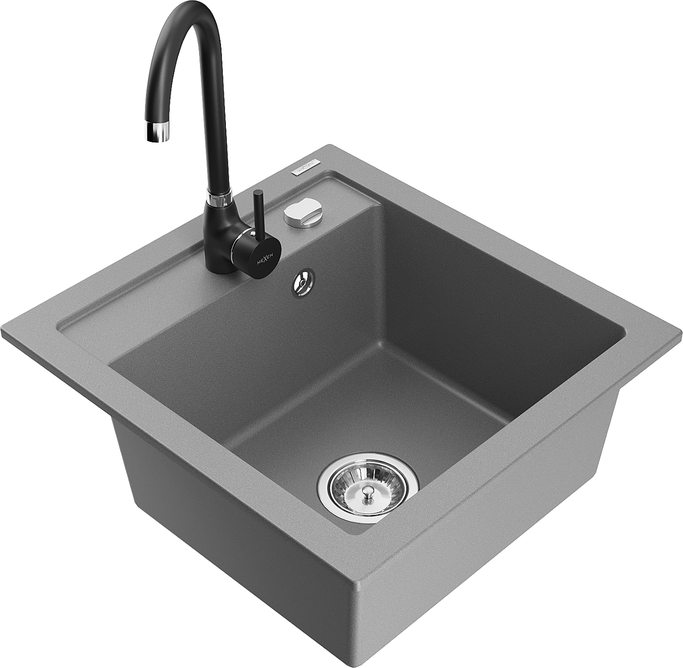 Mexen Vito zlewozmywak granitowy 1-komorowy z baterią kuchenną Telma, szary - 6503-71-670200-70