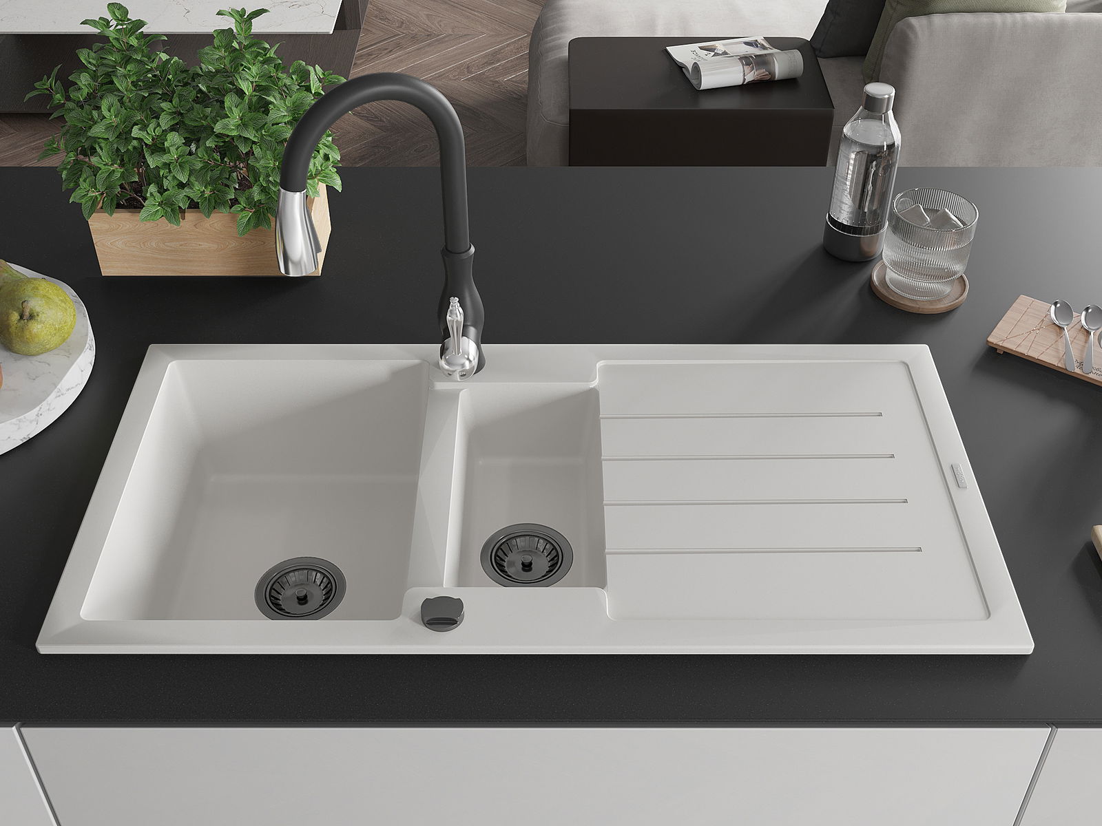 Zlewozmywak został wykonany z wysokiej jakości granitu. Stanowi eleganckie, a przede wszystkim praktyczne uzupełnienie każdej kuchni, niezależnie od jej stylu. Wysoka jakość oraz trwałość granitu zapewniają wieloletnie użytkowanie.