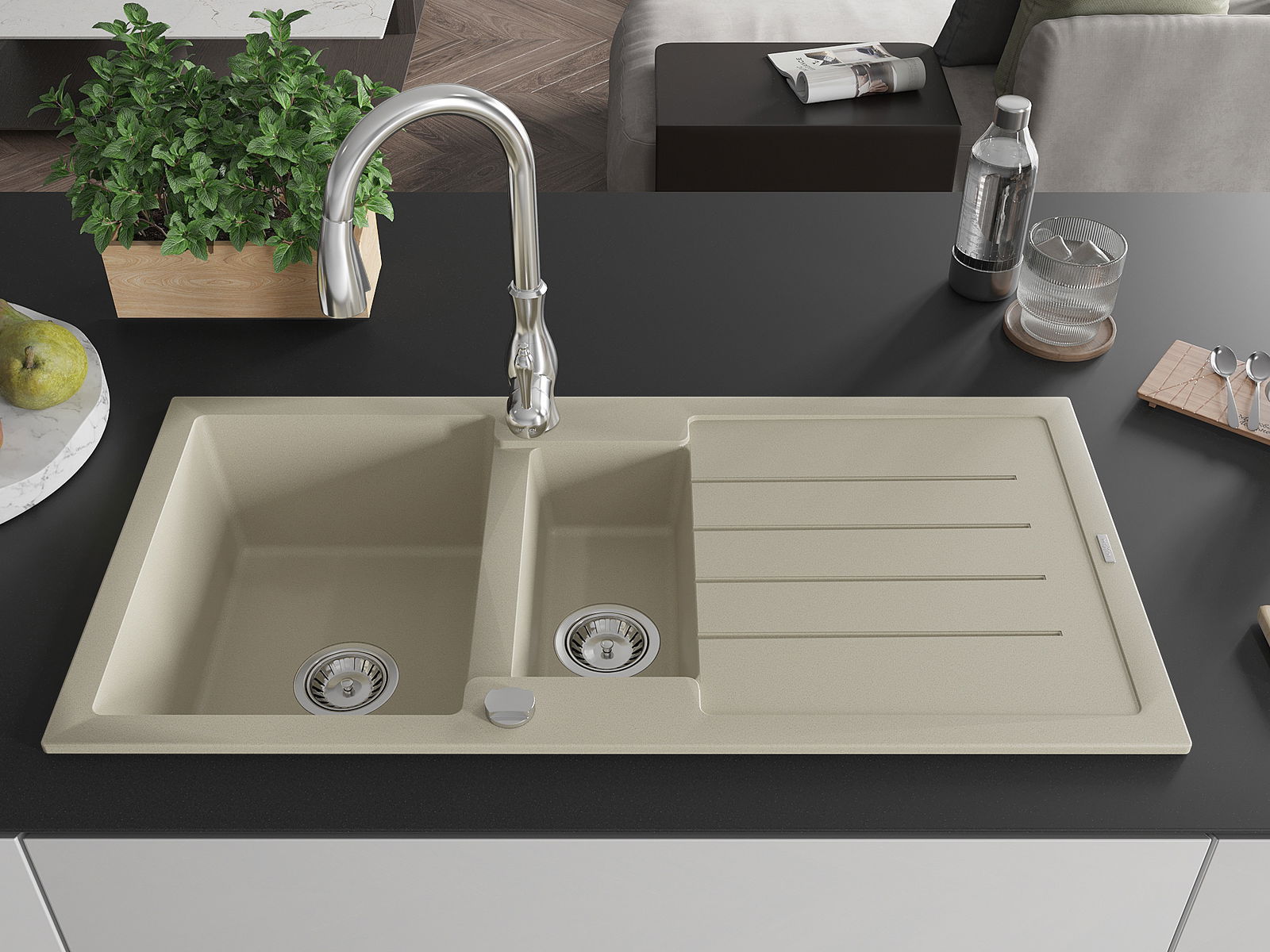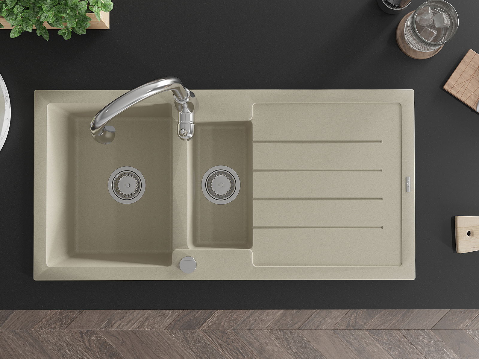 Powierzchnia zlewozmywaka jest odporna na plamy i przebarwienia, dzięki czemu jest łatwa w utrzymaniu czystości oraz zachowuje swój kolor przez długi czas użytkowania. Estetyczne i praktycznie uzupełnienie każdej kuchni.