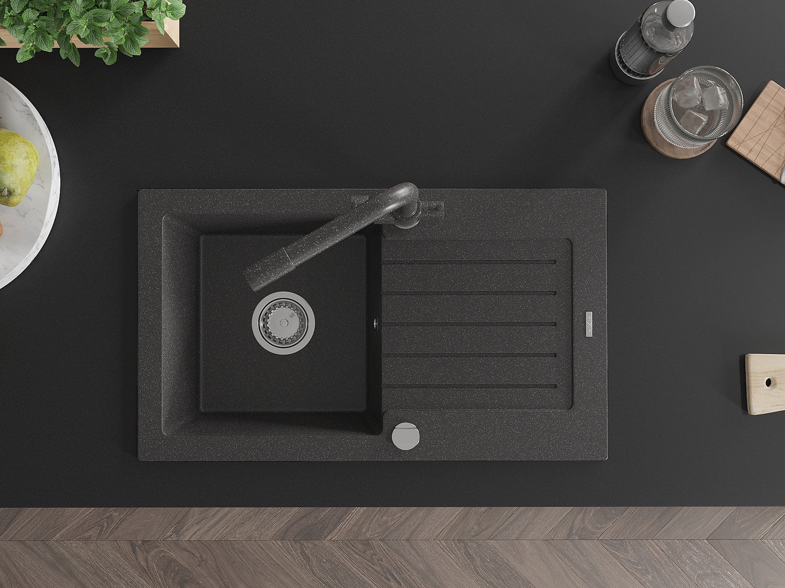 Zlewozmywak został wykonany z wysokiej jakości granitu. Stanowi eleganckie, a przede wszystkim praktyczne uzupełnienie każdej kuchni, niezależnie od jej stylu. Wysoka jakość oraz trwałość granitu zapewniają wieloletnie użytkowanie.