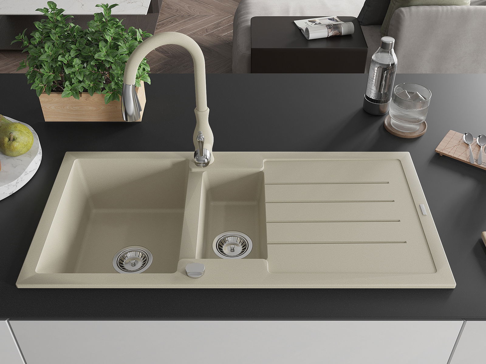 Zlewozmywak został wykonany z wysokiej jakości granitu. Stanowi eleganckie, a przede wszystkim praktyczne uzupełnienie każdej kuchni, niezależnie od jej stylu. Wysoka jakość oraz trwałość granitu zapewniają wieloletnie użytkowanie.