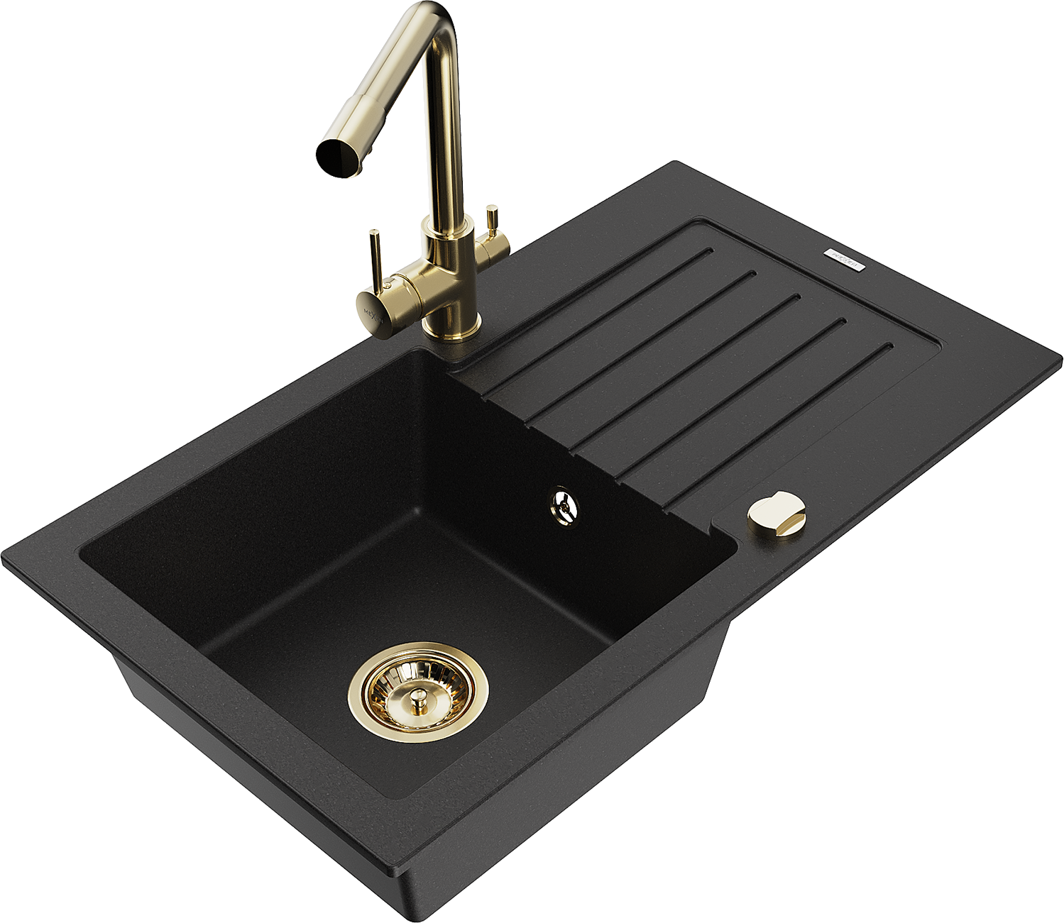 Mexen Pablo zlewozmywak granitowy 1-komorowy z ociekaczem i baterią kuchenną Duero, czarny - 6510-77-671600-50