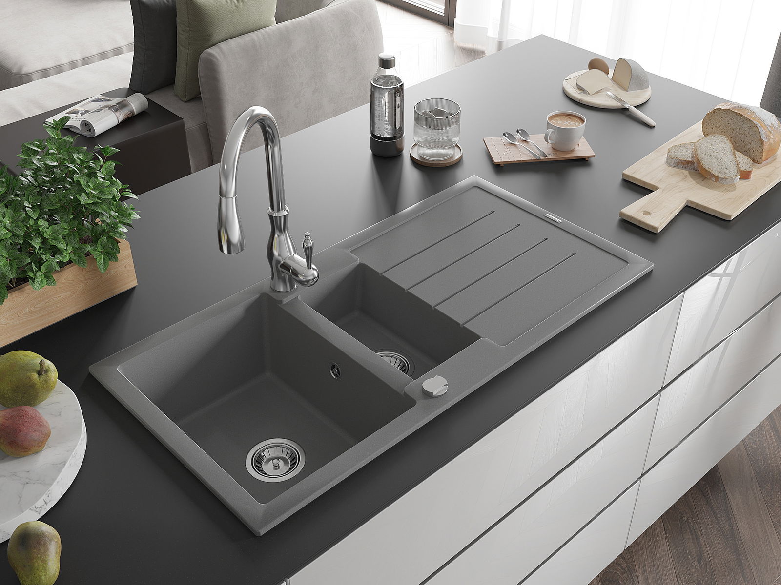 Zlewozmywak został wykonany z wysokiej jakości granitu. Stanowi eleganckie, a przede wszystkim praktyczne uzupełnienie każdej kuchni, niezależnie od jej stylu. Wysoka jakość oraz trwałość granitu zapewniają wieloletnie użytkowanie.