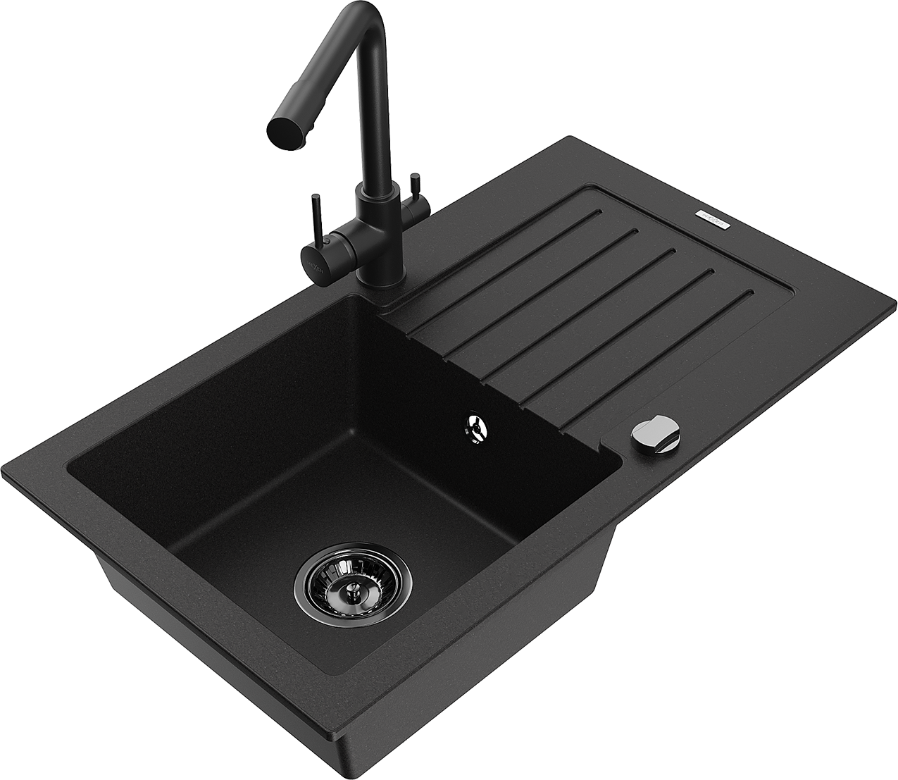 Mexen Pablo zlewozmywak granitowy 1-komorowy z ociekaczem i baterią kuchenną Duero, czarny - 6510-77-671600-70-B