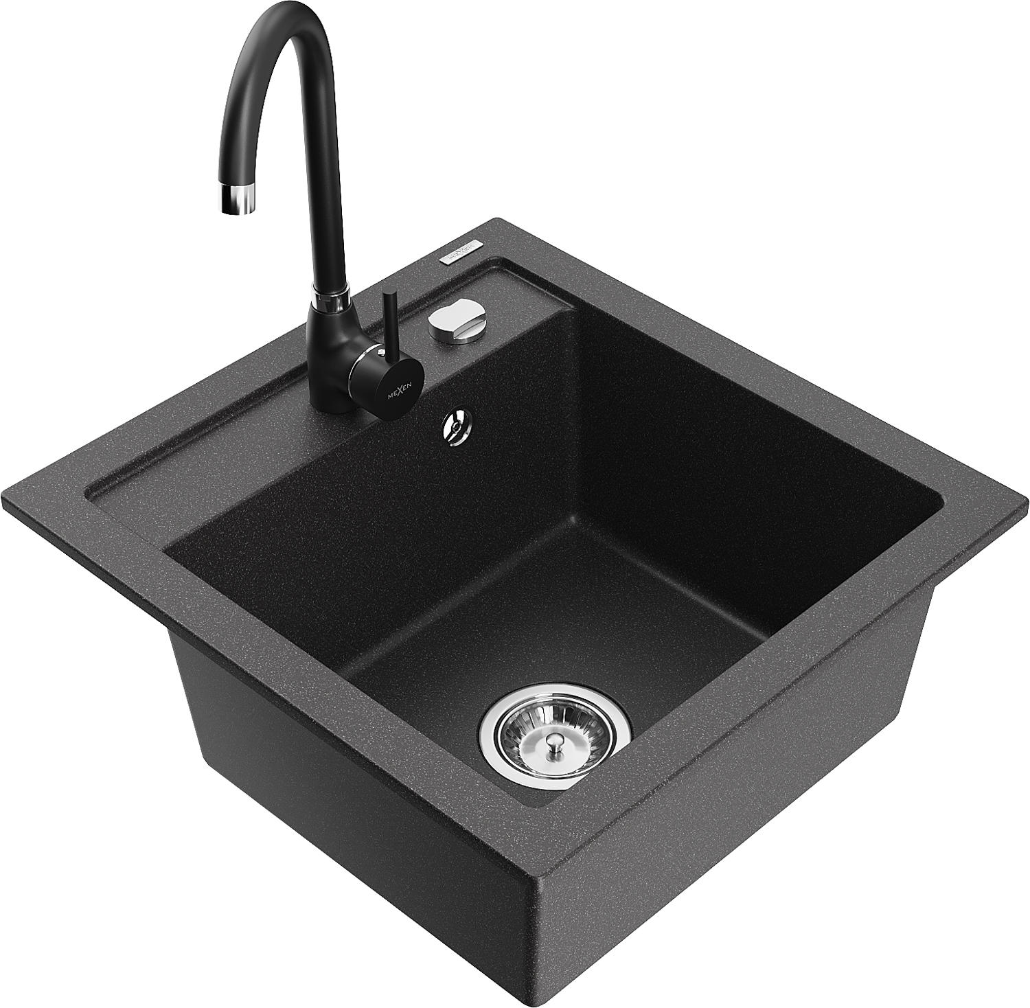 Mexen Vito zlewozmywak granitowy 1-komorowy z baterią kuchenną Telma, czarny nakrapiany - 6503-76-670200-70