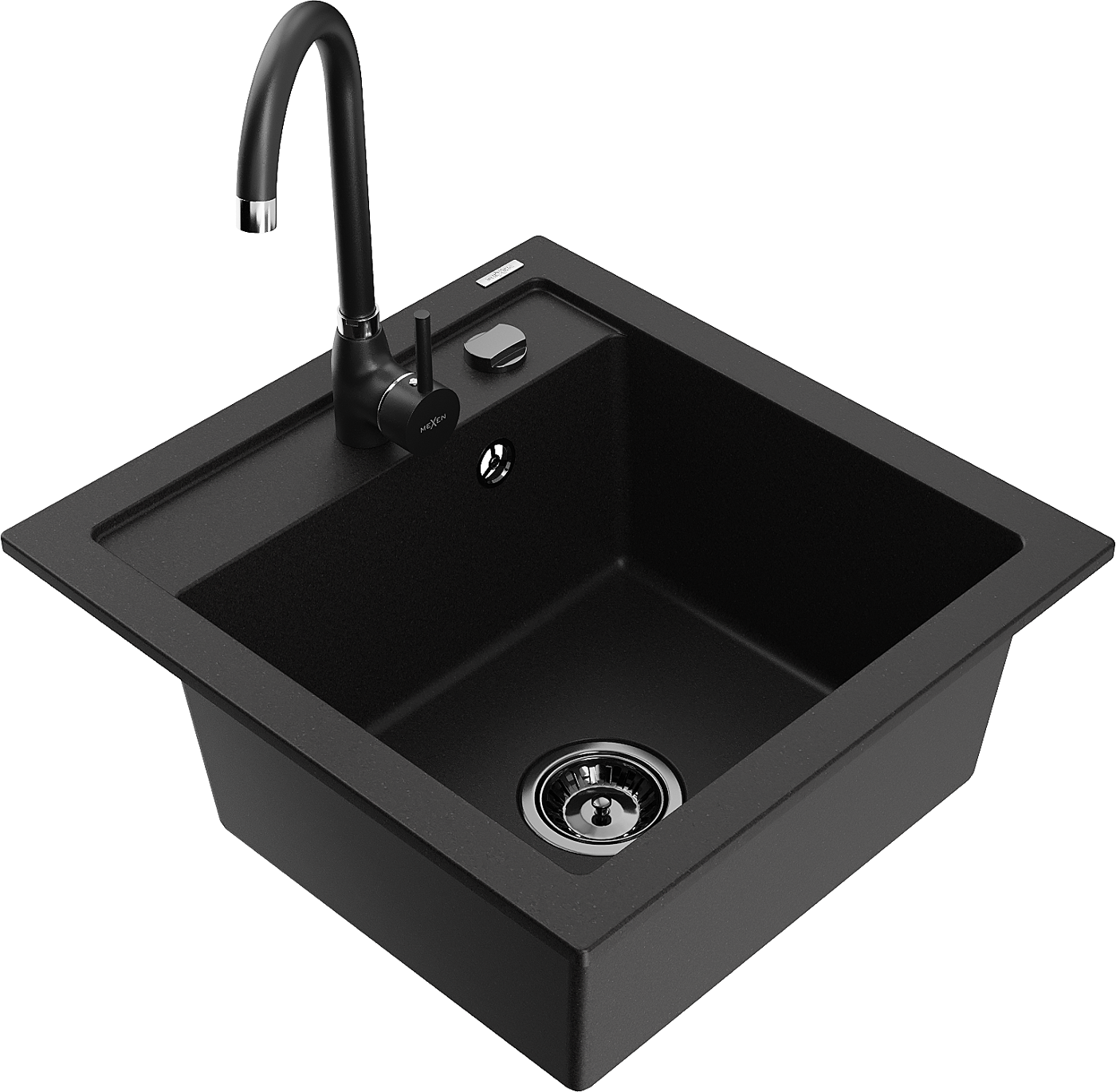 Mexen Vito zlewozmywak granitowy 1-komorowy z baterią kuchenną Telma, czarny - 6503-77-670200-70-B
