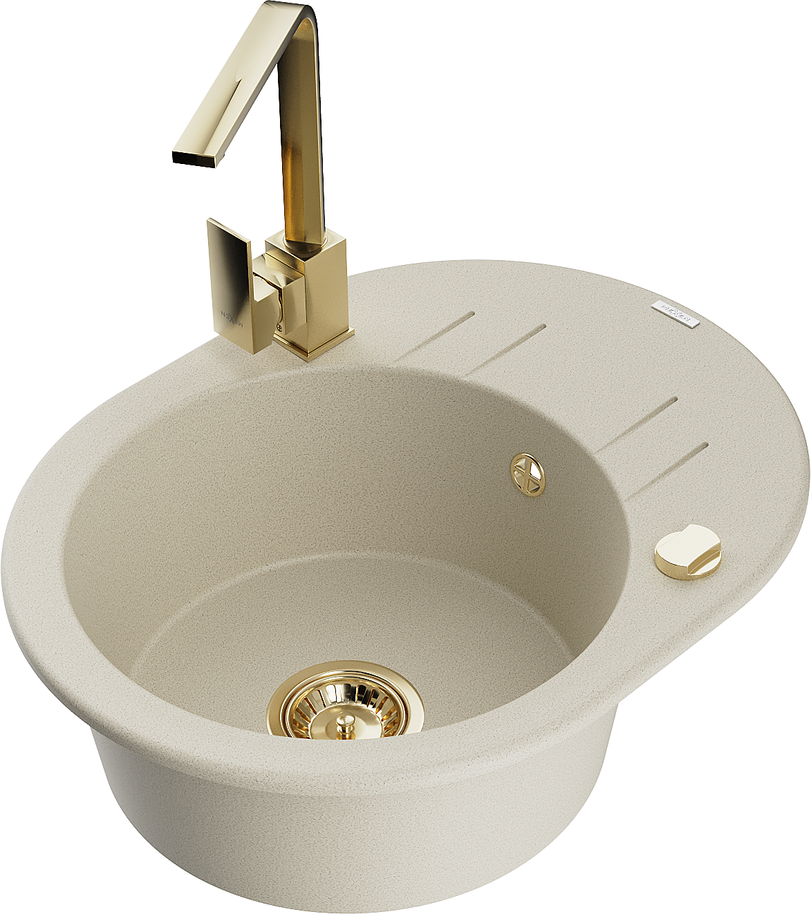 Mexen Kevin zlewozmywak granitowy 1-komorowy z ociekaczem i baterią kuchenną Rita, beżowy - 6517-69-670300-50
