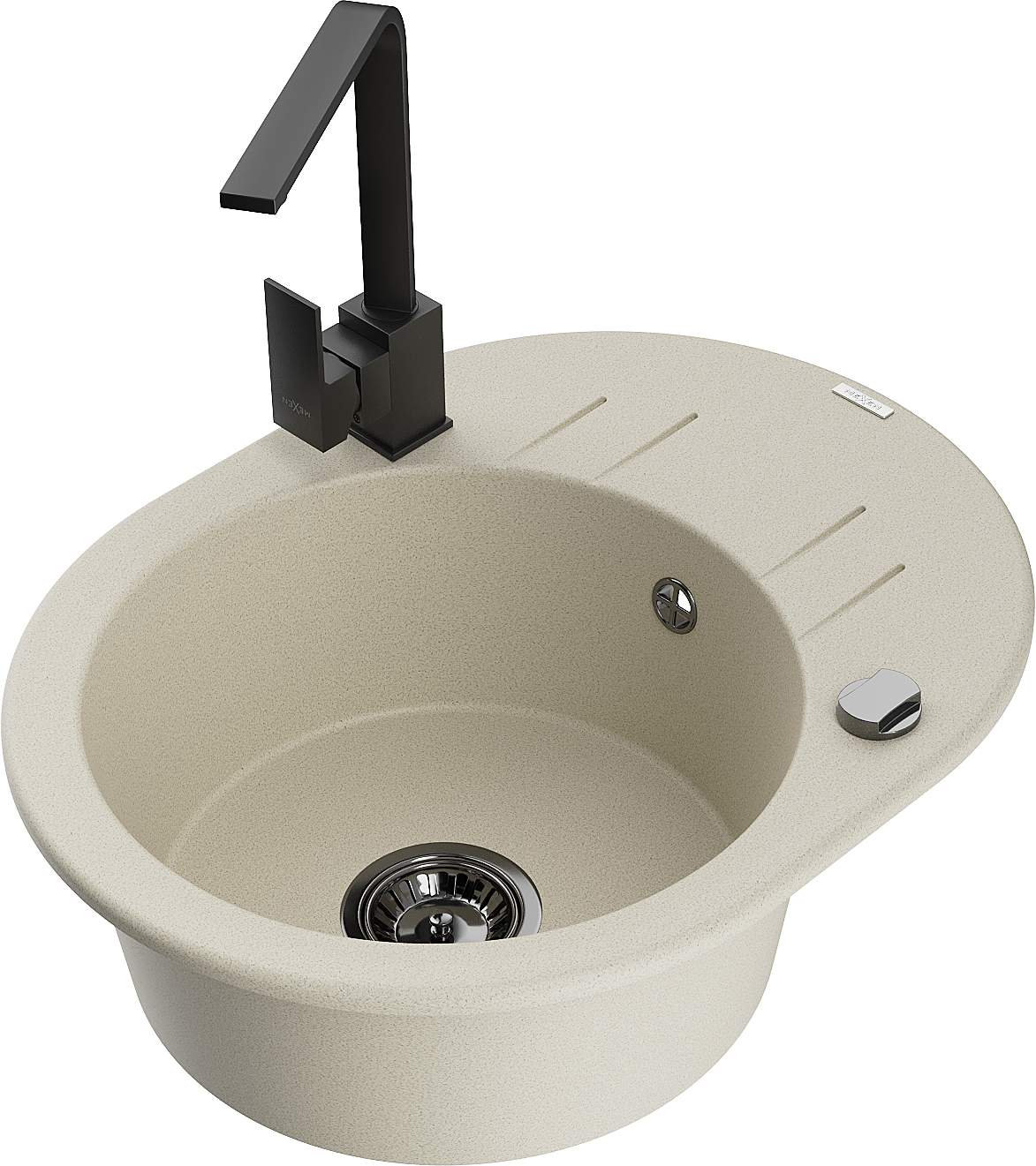 Mexen Kevin zlewozmywak granitowy 1-komorowy z ociekaczem i baterią kuchenną Rita, beżowy - 6517-69-670300-70