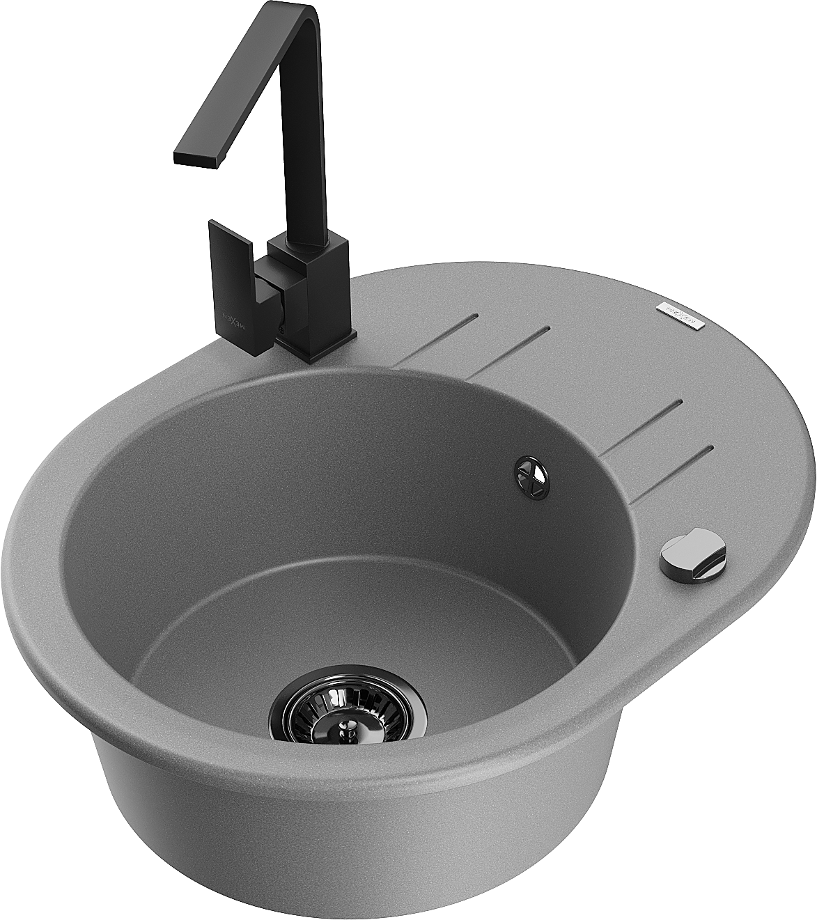 Mexen Kevin zlewozmywak granitowy 1-komorowy z ociekaczem i baterią kuchenną Rita, szary - 6517-71-670300-70-B