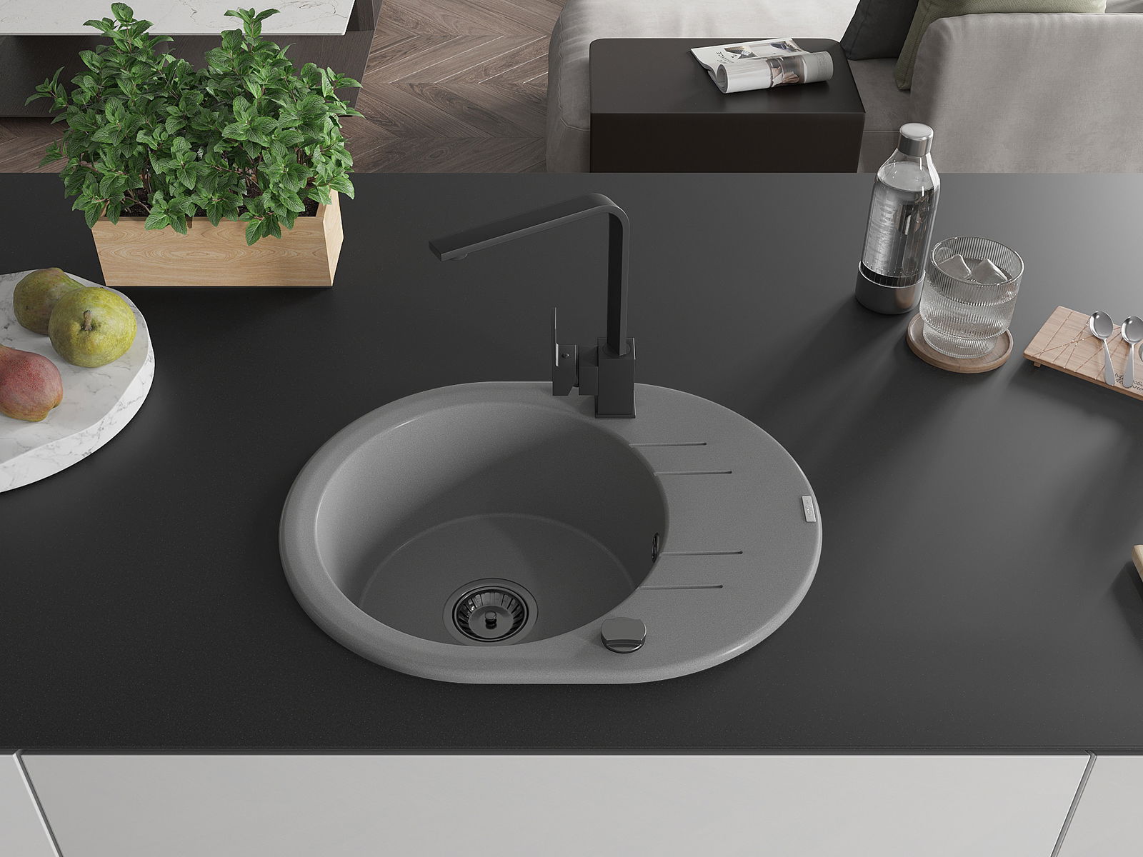 Zlewozmywak został wykonany z wysokiej jakości granitu. Stanowi eleganckie, a przede wszystkim praktyczne uzupełnienie każdej kuchni, niezależnie od jej stylu. Wysoka jakość oraz trwałość granitu zapewniają wieloletnie użytkowanie.