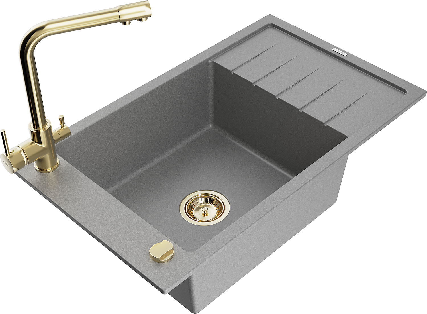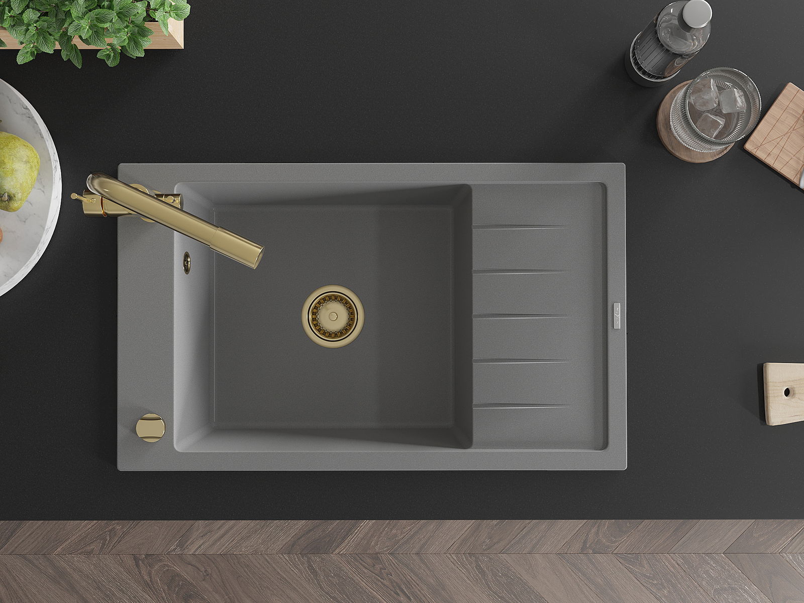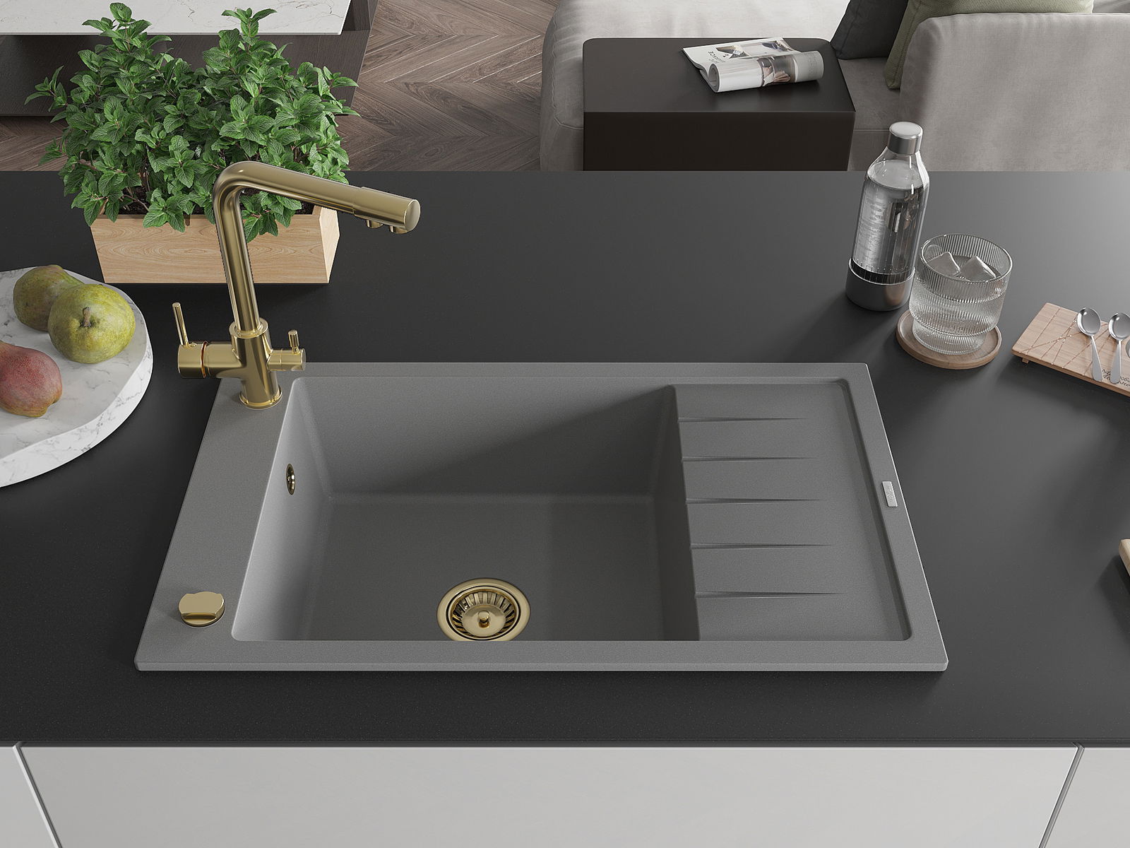 Mexen Elias zlewozmywak granitowy 1-komorowy z ociekaczem i baterią kuchenną Duero, szary - 6511-71-671600-50