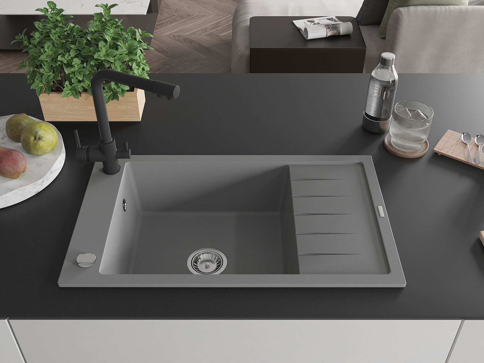 Zlewozmywak został wykonany z wysokiej jakości granitu. Stanowi eleganckie, a przede wszystkim praktyczne uzupełnienie każdej kuchni, niezależnie od jej stylu. Wysoka jakość oraz trwałość granitu zapewniają wieloletnie użytkowanie.