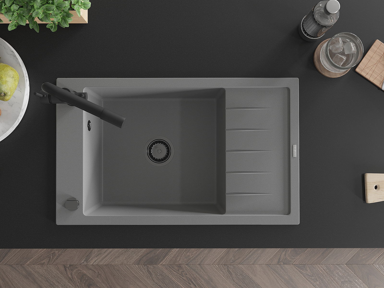 Mexen Elias zlewozmywak granitowy 1-komorowy z ociekaczem i baterią kuchenną Duero, szary - 6511-71-671600-70-B