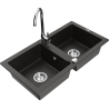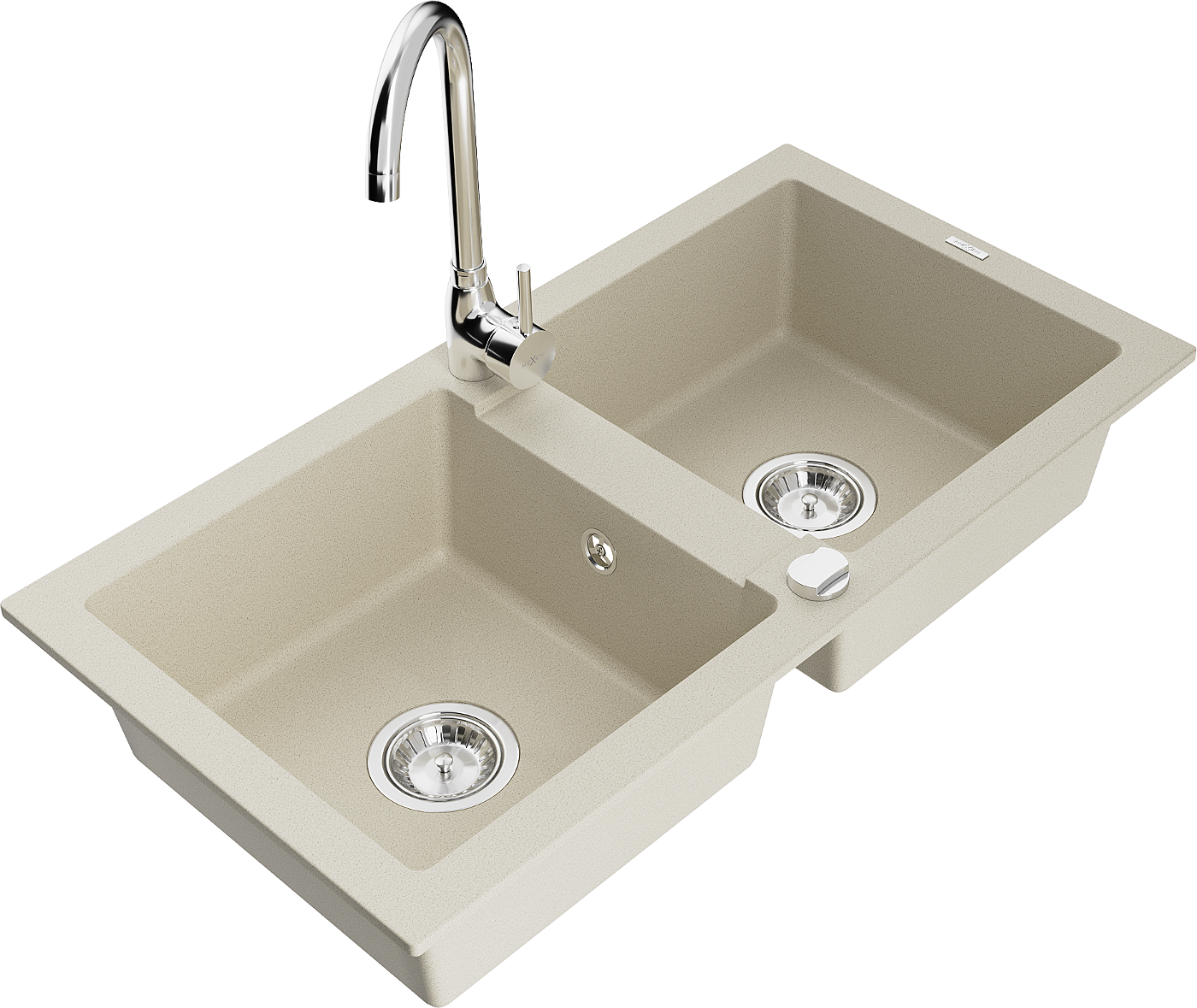 Mexen Mario zlewozmywak granitowy 2-komorowy z baterią kuchenną Telma, beżowy - 6504-69-670200-00